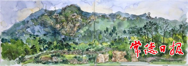 满怀依恋与崇敬,大学毕业后在家乡工作的我,结合工作围绕太阳山搞调研是我的最爱,先后翻过几趟山,转了几个圈,之前没有搞清的好奇渐次清晰。她形如几十里长的一条卧龙,花山部位是龙首,打山垭以北是龙尾,系两亿多年前游离武陵山脉爱上洞庭湖西岸这片鱼米之乡而驻留于此。她浑身是宝,堪称金山银山,山上有上百种飞禽走兽,数百种各类植物。那高大茂密的松、杉、樟、檫、榉、竹等林木一片连一片,其中不乏圆柏、银杏、红豆杉等珍贵树种,记得山顶老寺庙遗址有一棵笔直冲天的古柏,我与同事两人合抱不拢。那满山铺天盖地的灌木、草丛也密不透风,为周边六座小型水库、一座中型水库、两个大湖涵养了丰沛的水源。位于西麓中部拾柴坡的“白龙潭水库”翠峦倒映,龙潭部位深不见底,当地人说从未干过,潭底的鱼有近米长。北端的“国丰水库”紧邻明荣庄王墓,巨大的墓石和岩狮岩马遗迹尚在,位尊风水宝地,吹绉的库水总觉漾着那么一丝仙气。那座中型的“红旗水库”更是大山东麓万千粮农的命脉。南端则径流罗湾注入沾天湖、柳叶湖,为常德市民奉送了骄人的奢侈。