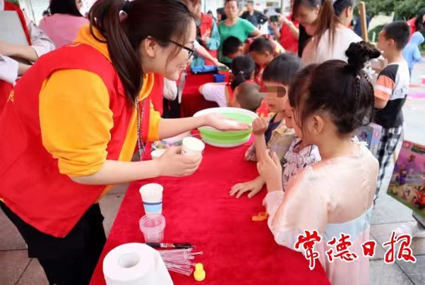 科普小实验、文物大拼图、垃圾分类、无敌风火轮、你比我来猜……来自湖南应用技术学院、市科学技术馆等单位的志愿者还为孩子们准备了许多互动游戏,由困境(留守)儿童及家长们共同完成。“这是个动物,长得像猫,但其实是森林里面的大王”“老虎!”在游戏区,孩子们和长辈玩成一片,欢笑声连连。“好神奇,爷爷你快来看,真的变成雪了!”“人造雪是一种神奇的吸水树脂,它能把水变成一种白色蓬松物质,而且无毒、无害、无污染。”在科学实验区,志愿者认真讲解科学知识,孩子们听得十分入迷。