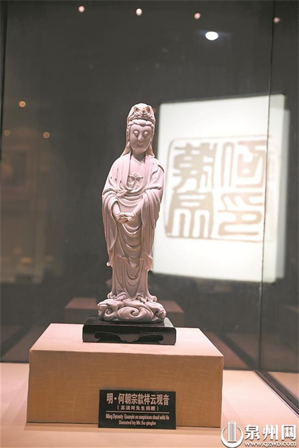 “何朝宗生于何时、卒于何年,历史上无明确记载。”德化县陶瓷博物馆馆长郑炯鑫介绍,清乾隆年间《泉州府志》载:“王弼,小名盛世。工诗文书画,尤善塑大士写真及诸仙佛像,独造其微。同时又有何朝宗者,善陶瓷像,为僧伽大士,天下传宝之。”泉州南门天后宫保存王弼雕塑的天妃造像,墨书万历纪年款识,风格与何朝宗瓷塑极其相似。人们由此推断,何朝宗大约生活在明朝嘉靖、万历年间。