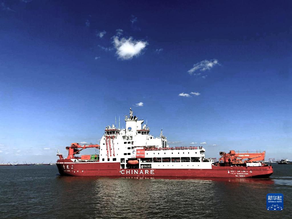 2020年11月10日,中国第37次南极科学考察队乘坐“雪龙2”号极地科考破冰船从上海起航,奔赴南极执行科学考察任务。新华社发(中国极地研究中心供图)