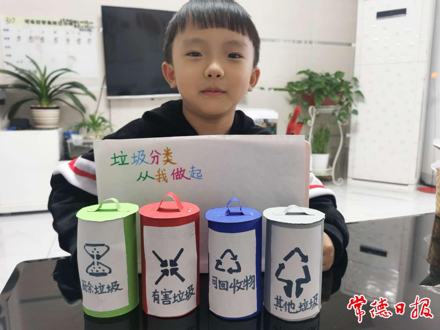 课程结束,同学们跃跃欲试。他们在家长的指导和协助下,纷纷化身手工小达人,用巧手创作出一件件精美的作品。低年级学生张芷嫣、陈子瑞将学到的垃圾分类知识融入到儿童创意绘画中;学生黄宣铭、李佳颖利用家里的饮料瓶、易拉罐、纸杯、纸盒等常见的生活废品,制作出一个个设计新颖、创意独特的“四分类垃圾桶”;高年级学生蒋嘉成、肖芷轩、姚志尧等,找来家里的旧衣服、旧袜子,改造成手套、帽子、枕头、收纳袋等生活用品。