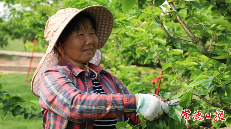 今年49岁的余意华是裕民村村民,以前家里的主要经济来源靠种地,收入非常有限,自梨园建成以来,她就一直在梨园务工。“我在这里务工近9年了,主要工作就是除草、剪枝、拉枝、疏果、套袋,每年有近3万元的收入。”