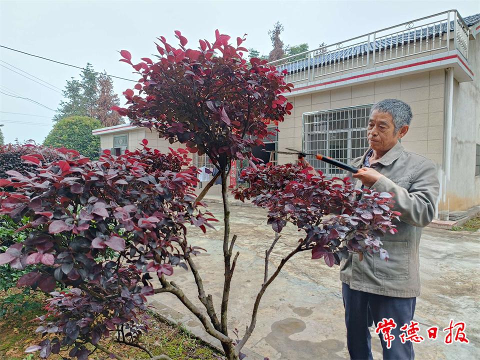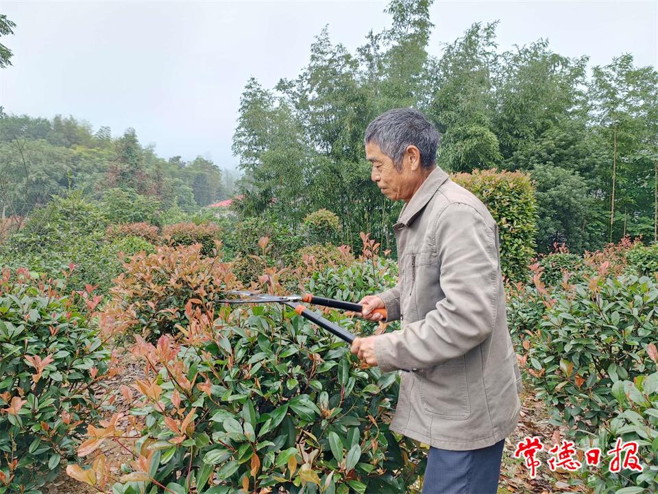 “这个红檵木是圆柱形,那个罗汉松是孔雀形,红叶石楠是圆球形,这些形状都是根据市场的需求修剪的,哪种形状值钱,我就慢慢琢磨,三年五年就成形了。有形状的花木市场价格要高很多呢!”张开忠一边修剪,一边谈他种植花木的体会。