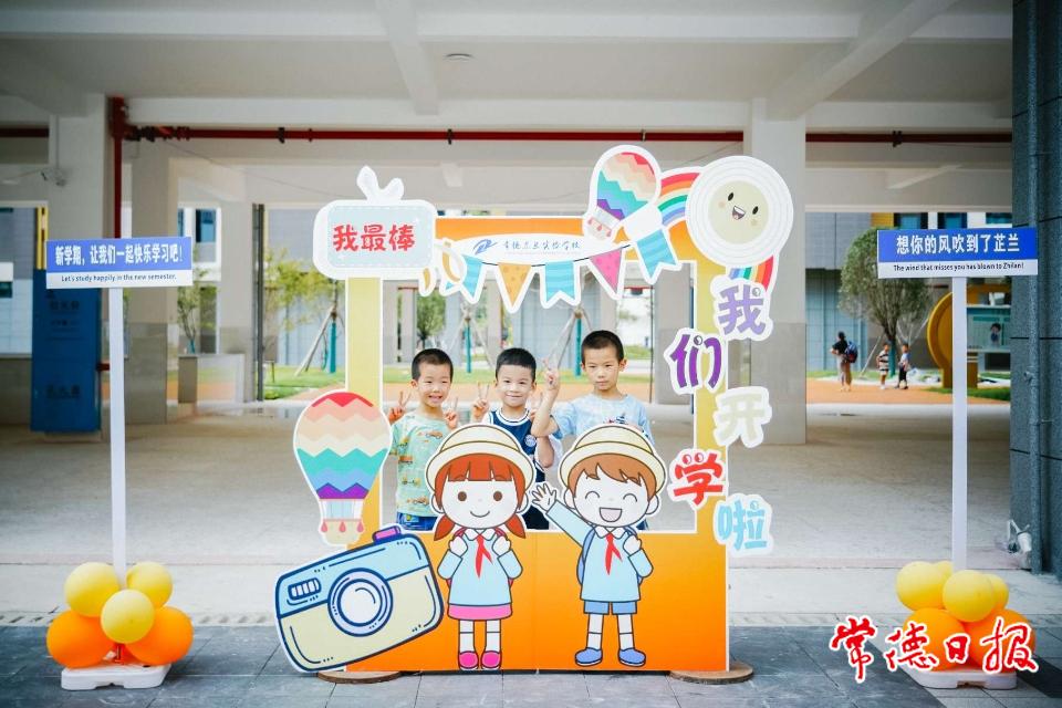 常德芷兰实验学校小学部校区坐落于武陵区芷兰街道,即紫菱路以北、翦伯赞路以东、新河路以南,占地总面积约为88亩,总建筑面积为40962平方米。学校教学设施设备一流,连廊、风雨操场、露天平台等区域设计为学生营造了温馨、自然、美好的成长环境,标准化的室外体育场在蓝天白云的映衬下更显靓丽。为迎接新学期的到来,学校布置了饱含趣味和美好祝福的迎新对联、互动性强的“小树手印”展板以及开学打卡展板、“芷兰风”路牌等,教室内各具特色的氛围布置更是让开学仪式感满满。同学们和家长在新校园里开心地拍照打卡,纷纷表示对新学期充满期待。