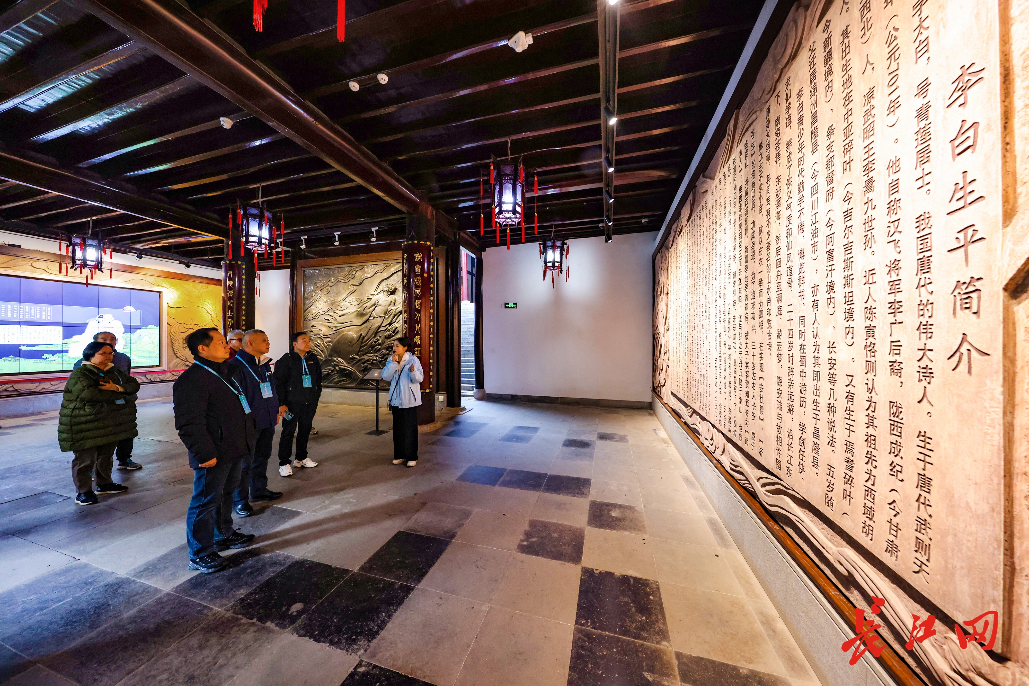 探访团成员正在三台阁内研读关于李白的介绍。王筝 摄