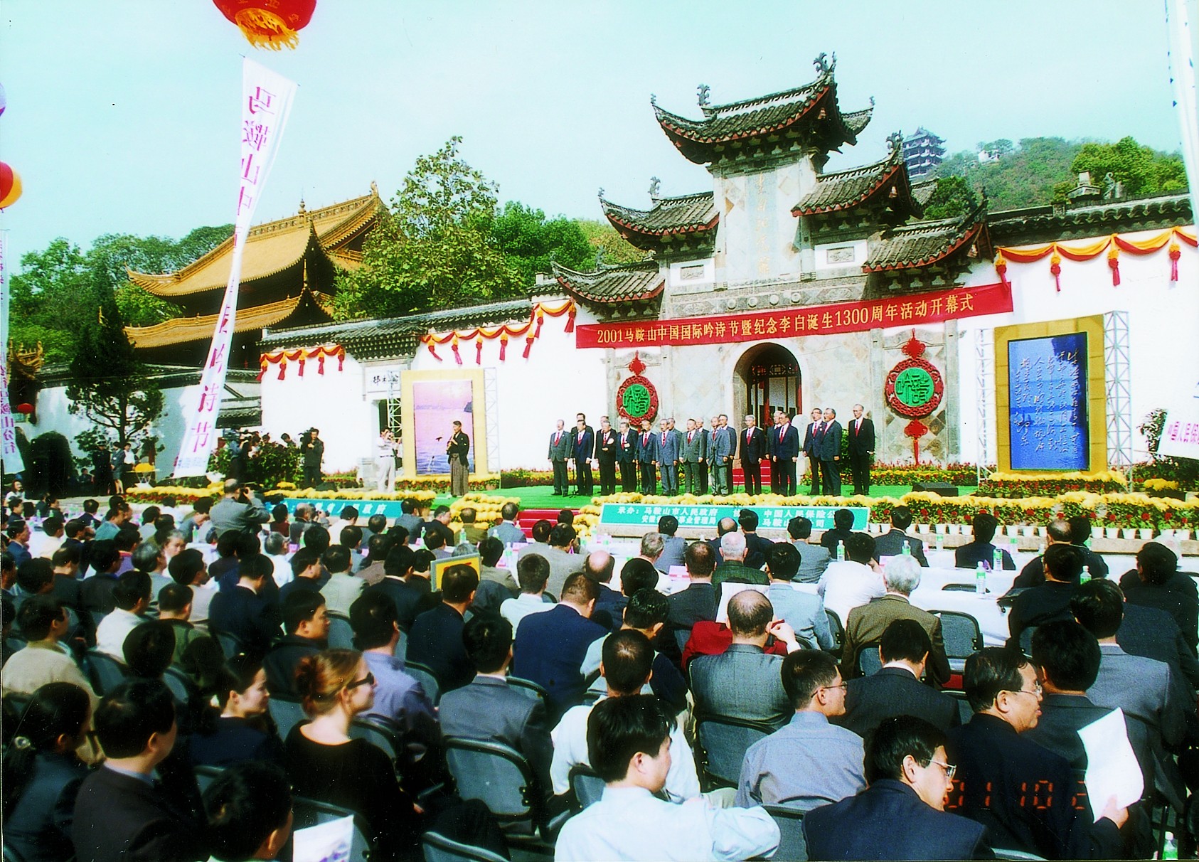 2001年,李白诞辰1300年时在李白纪念馆前举办的马鞍山市中国国际吟诗节活动现场。马鞍山市文旅局 供图