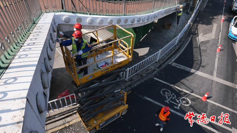 为进一步美化城市环境、提升城市文明形象,日前,常德市灯饰管理处组织维护工人对丹阳天桥亮化景观进行刷漆翻新、维护换新工作,以干净整洁的灯容灯貌助力常德创文巩卫。此次提质改造工作中,市灯饰管理处坚持党建引领业务,该处党支部纪检委员全程参与工程监督,并在施工材料的使用、施工质量的达标等方面进行严格监督检查,以确保改造工程符合相关要求,为改造工程保驾护航。