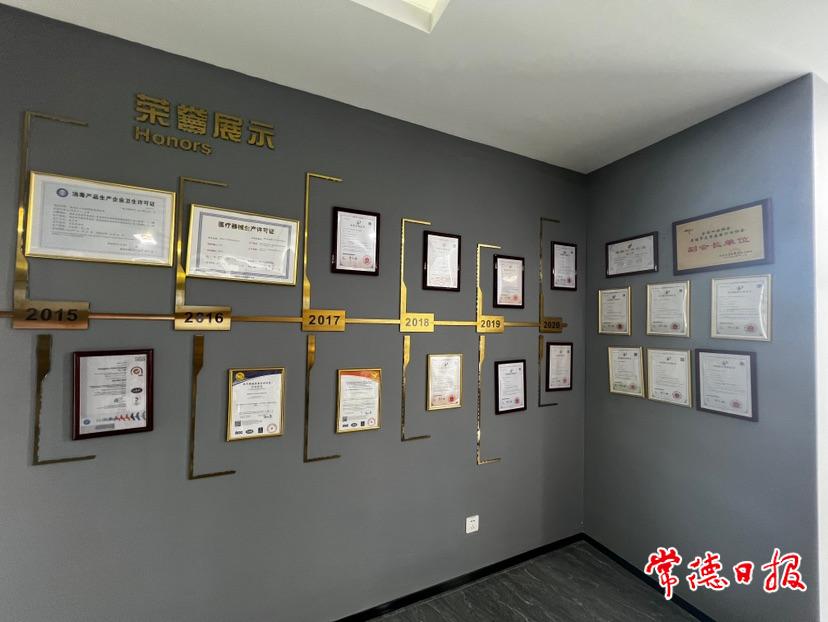 在企业产品陈列墙的正中间,摆放着庭七、有椰两大品牌的产品。“庭七、有椰两个品牌就是我们目前主打的自有品牌。”这让记者有些意外。庭七的压缩毛巾是记者经常回购的产品,没想到居然是常德制造。他介绍,品六生物成立之初,主营业务是发贴牌生产为主,没有自己的营销渠道和主打品牌。“经过几年的积累,企业逐步明确了发展方向:以创新带动品质,以品质创立品牌,从中间加工商变成终端产品打造商。”经过两年多的转型升级,品六生物产品从以往单一的暖宝宝扩展至三大类:发热产品如暖宝宝、艾灸贴等,消字号产品如洗脸巾等,械字号产品如口罩等,成为珍视明、屈臣氏、名创优品等大品牌的稳定合作伙伴,自有品牌也渐成气候,特别是洗脸巾等明星产品销量红火。