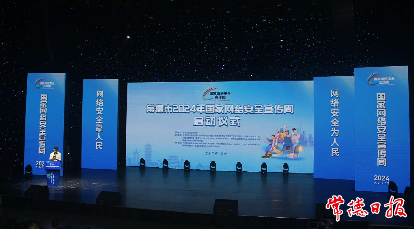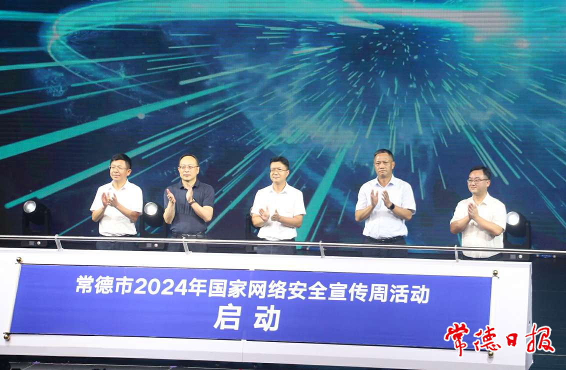 常德日报记者 李张念 文/图 9月9日,常德市2024年国家网络安全宣传周启动仪式在鼎城区融媒体中心举行。市委常委、市委宣传部部长彭晛丹宣布活动启动,副市长、市公安局局长张永强出席活动并讲话。