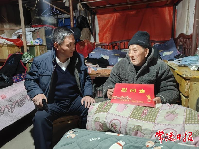 常德日报记者 邓淇月 通讯员 陈嗣林 文/图 1月14日,在新春佳节来临之际,副市长、市公安局局长张永强走访慰问92岁在乡复员军人吴德贵,为他送去了党的关怀和组织的温暖,并向他致以崇高敬意和节日问候。