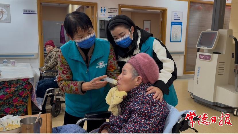 1月25日早上6时30分,在武陵区府坪街道新村社区日间照料中心,徐小亮轻轻摇醒一位半眯着眼的老人。