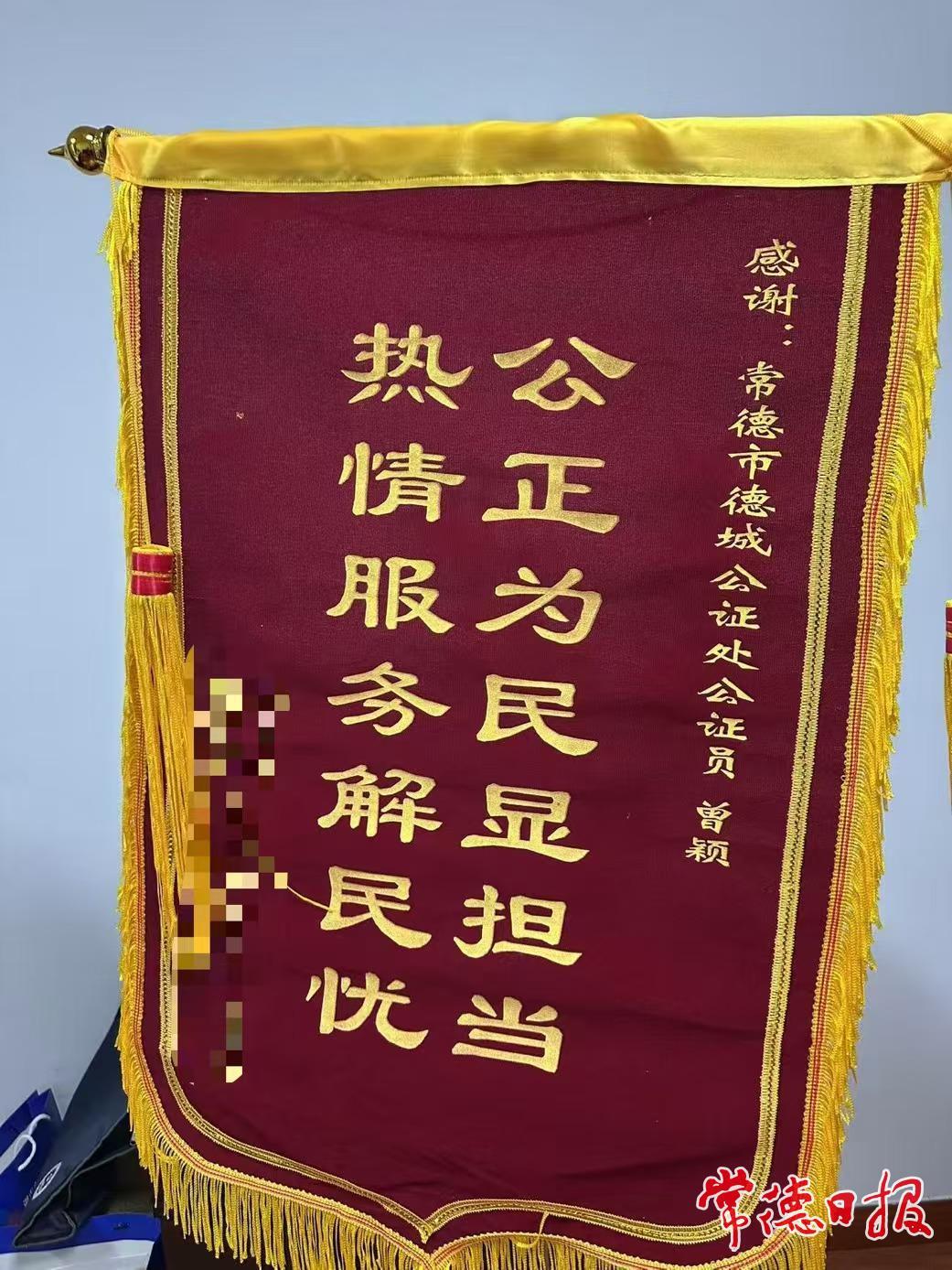 常德日报记者 肖慧 粟钰 文/图“真是太感谢你们了!没有你们,我们真不知道该怎么办才好!”近日,面带微笑、手持锦旗的杨先生走进了常德市德城公证处。他高高举起一面鲜红的锦旗,锦旗上面金黄色的绣字“公正为民显担当 热情服务解民忧”格外醒目。