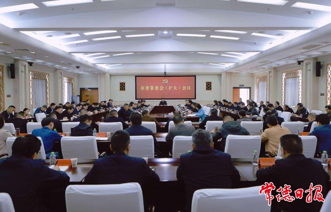 常德日报记者 王自来 文/图 2月25日,市委书记罗毅君主持召开市委常委会(扩大)会议,研究部署推进高质量发展、优化营商环境、改进干部作风、加强干部监督等工作,动员全市上下锚定“三个高地”、推进“二次创业”,进一步转作风、优环境、拼经济,提振信心、奋发有为,努力交出高质量发展的优良答卷。市委副书记、市长周振宇出席并讲话。
