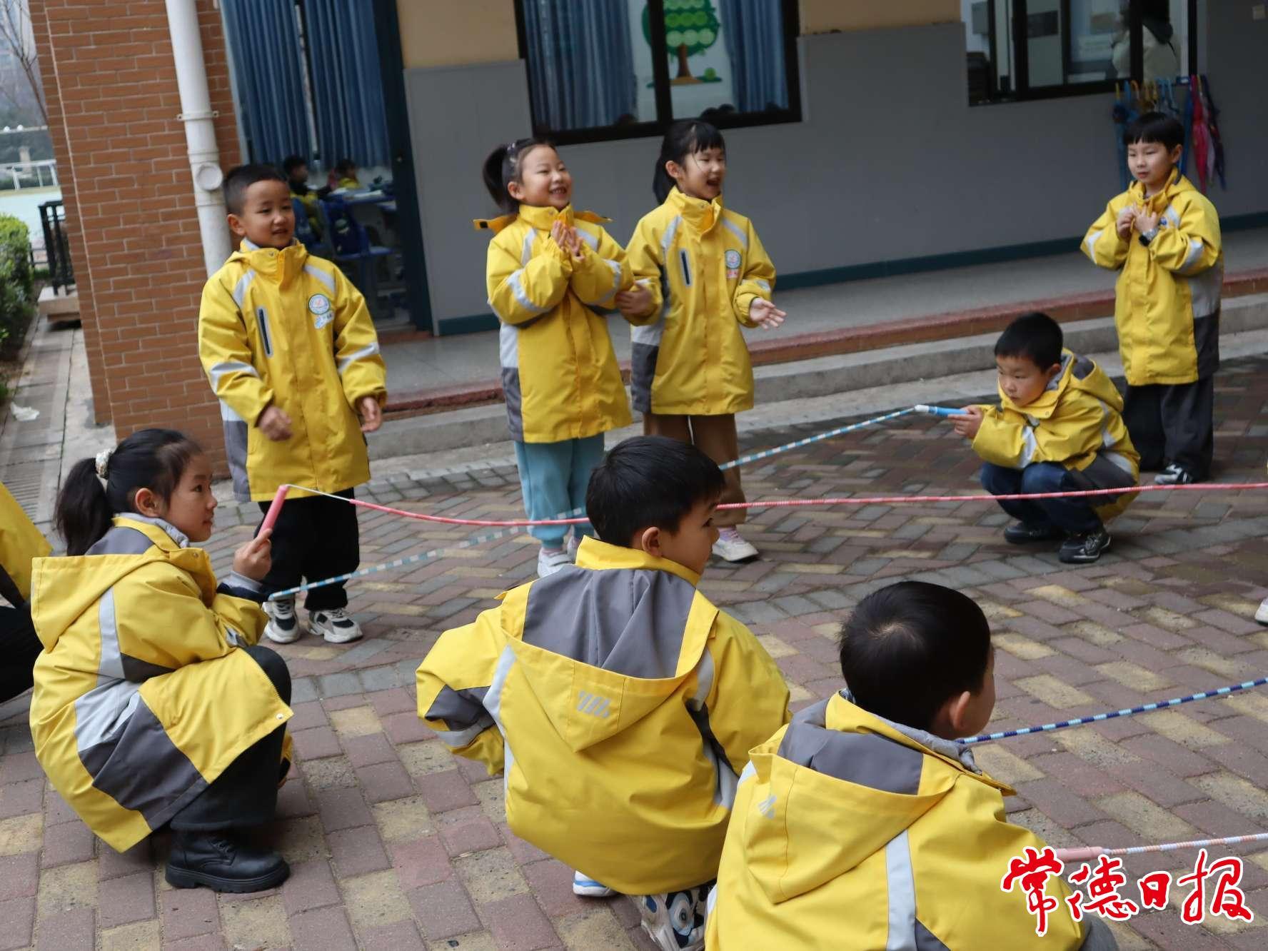 2月28日上午9时,伴随着清脆的铃声,孩子们走出教室,或到走廊,或去操场,开心玩耍。操场上,68班学生叶筱雅自创的“玩转跳绳”游戏吸引了众多同学参与。她巧妙地将跳绳与舞蹈动作结合,不仅锻炼了身体,还增添了趣味性。35班的李晨洋则是踢毽子的高手,他技艺娴熟,引得围观同学连连喝彩。张雅馨的呼啦圈旋转自如,自信满满,赢得了同学们的喝彩声。“草莓蹲、草莓蹲,草莓蹲完梨子蹲……”三年级一部分学生“萝卜蹲”游戏玩得正嗨,大家围成一圈,轮流下蹲,欢声笑语不断。另一旁,周品汐带领同学们跳起了传统的“跳房子”游戏,大家在方格间跳跃,既锻炼了身体,又感受了童年的乐趣。