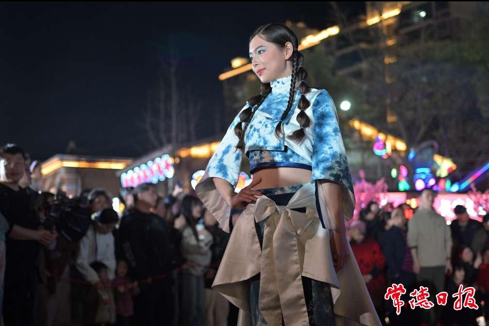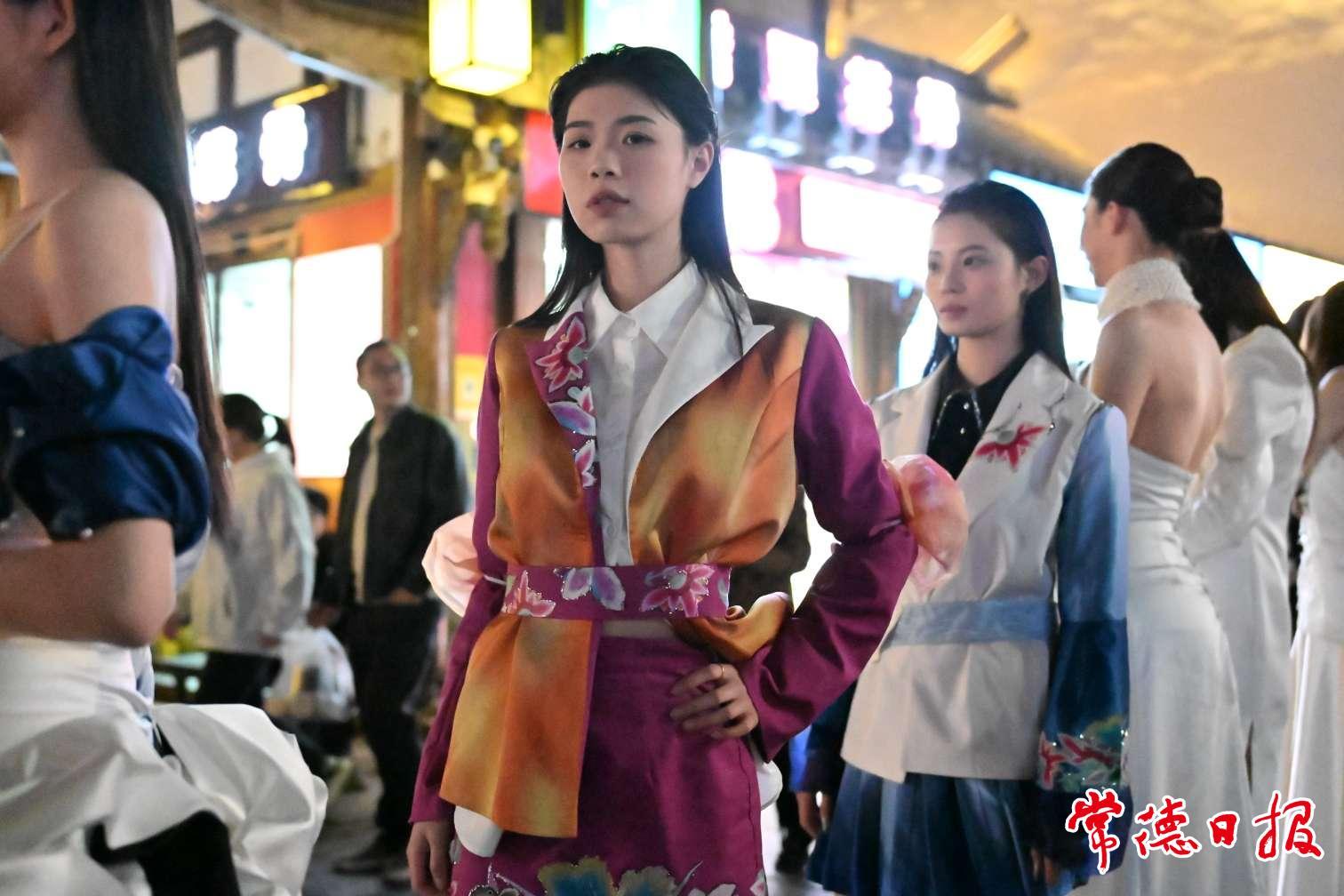活动现场,身着非遗华服的模特与古街青砖黛瓦相映成趣,吸引众多游客驻足拍照。服装专业学子郭丽娜、陈昕忙着为模特调整衣摆,眼中难掩自豪:“当看到传统纹样因我们的设计被更多人喜爱,感觉特别开心。”指导老师杨雅静轻抚服饰上的桃源刺绣,感慨道:“学生们用现代设计语言与非遗对话,让传统纹样从书本走进生活,这正是文化传承最美的样子。”