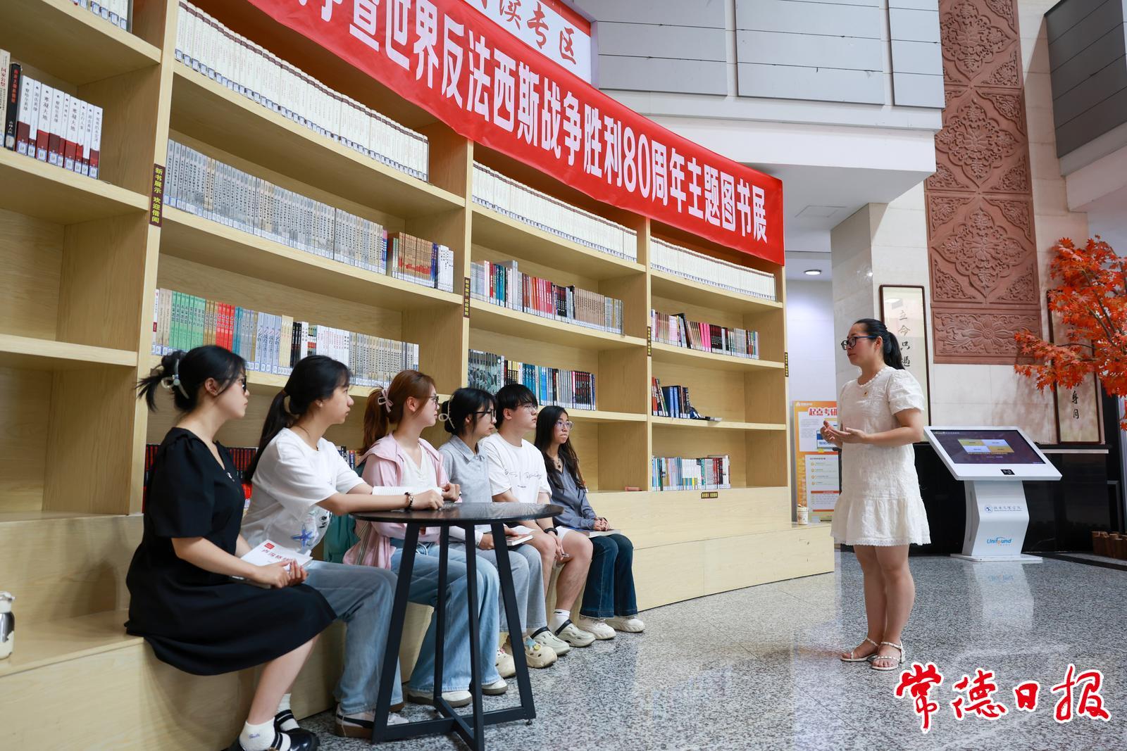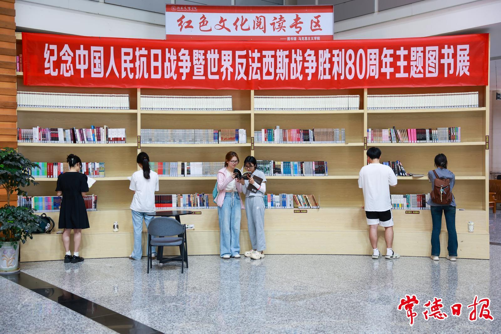 为纪念中国人民抗日战争暨世界反法西斯战争胜利80周年,从今年3月起,湖南文理学院图书馆设立主题图书展,打造红色文化阅读专区。丰富的抗战题材图书陈列整齐,涵盖历史纪实、英雄事迹、学术研究等类别700多册图书,为师生打开了解抗战历史、感悟伟大精神的窗口。常德日报记者 蔡文龙 摄影报道