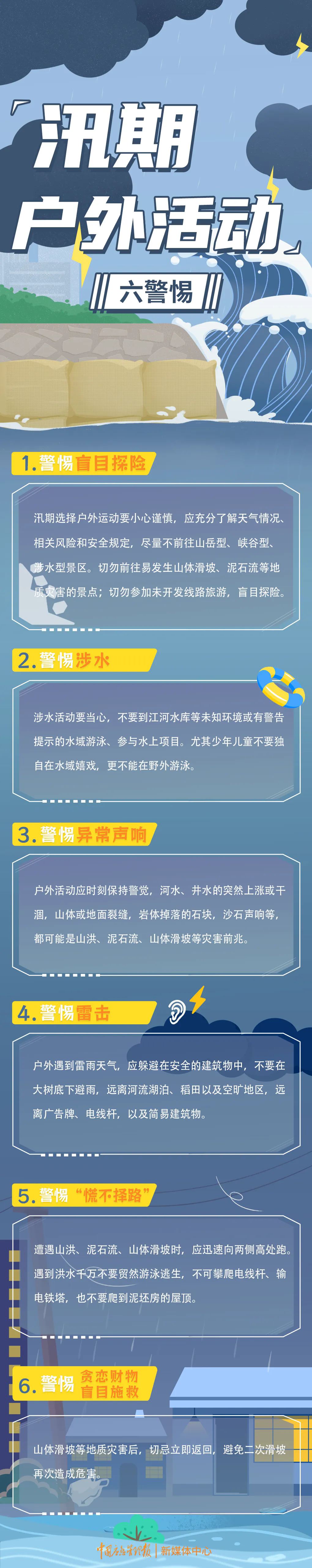 暴雨突袭易造成内涝,在积水中行走,要拿棍子不断探查路面,远离电线杆等。注意!水深一旦齐腰,就不要继续蹚水,易被冲倒卷入急流,发生危险。