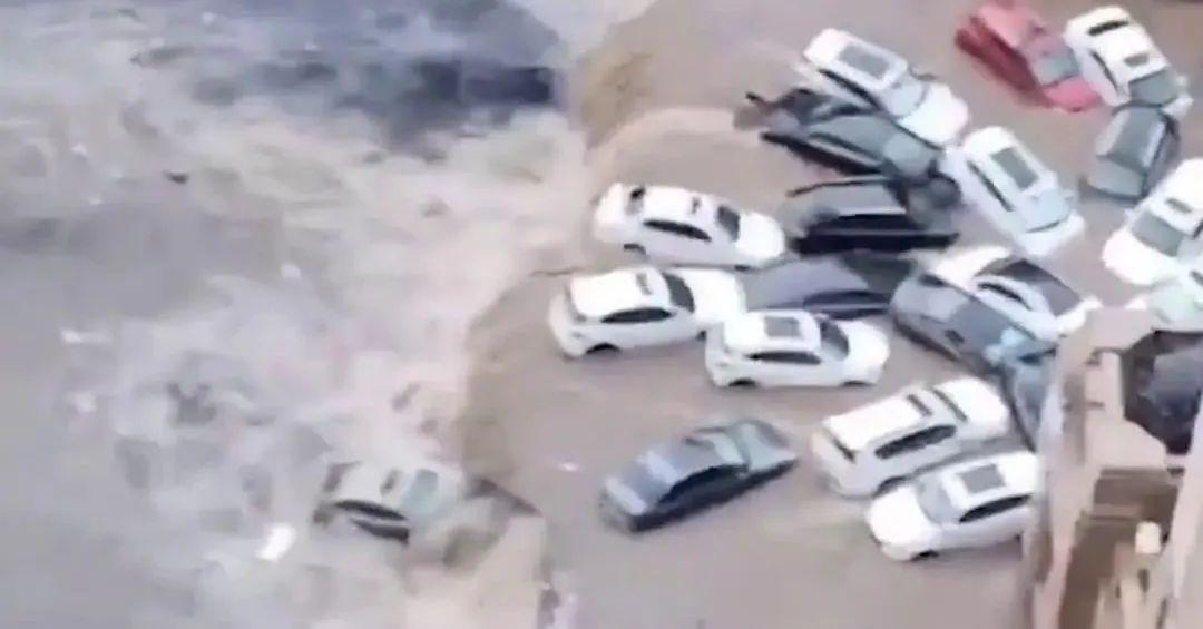 6点09分,雨势达到峰值,有汽车被小区里的积水冲进人工湖。