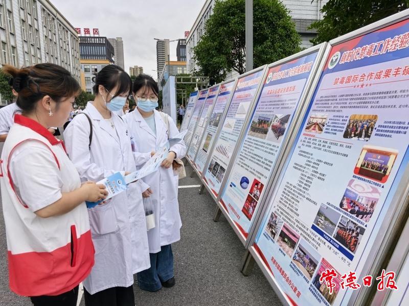 常德日报记者 邓淇月 通讯员 谭缜 文/图 6月26日,常德市禁毒委在湖南名家医药集团有限公司举办“防范药物滥用,共建无毒沅澧”主题宣传活动,通过实地调研与互动宣传相结合的方式,深化医药行业禁毒意识。市委常委、市委政法委书记、市委秘书长、市禁毒委第一副主任傅勇,副市长、市公安局局长、市禁毒委常务副主任张永强参加活动。