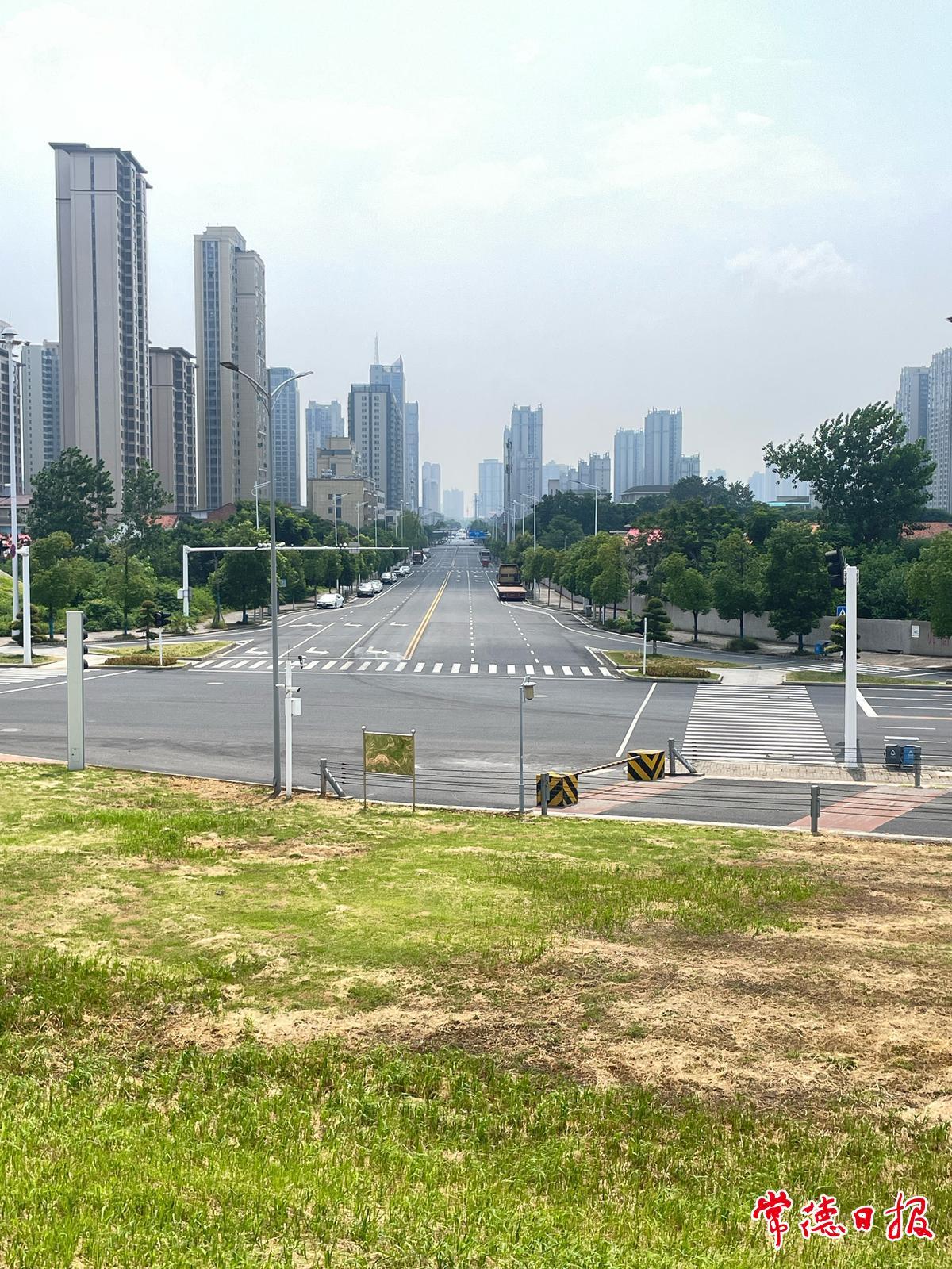 7月15日上午,蓝天高悬,沅水碧绿,站在花溪路西端的沅水大堤回望,花溪路在刺目的阳光下仿佛一条波光粼粼的河流,车辆像河面上移动的小船。而桃花源大桥和远处的高楼,如在画中。