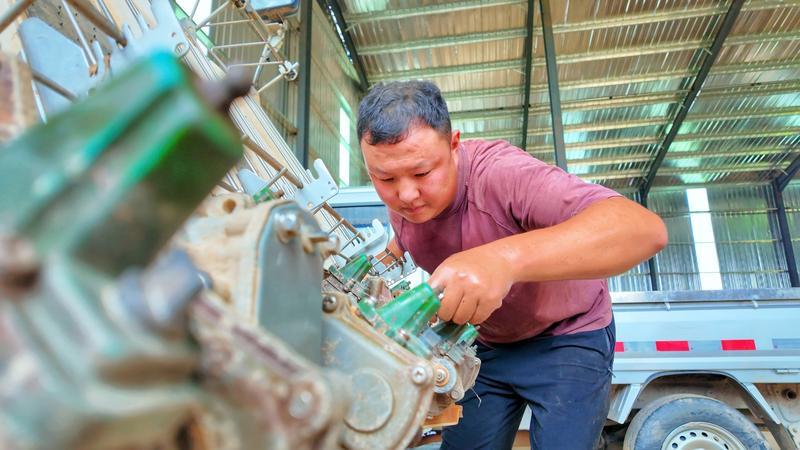 基地负责人邓建彪站在田埂上,手机轻点,沟渠里的水便汩汩流入刚收割的田块。智慧灌溉系统的银光在渠边闪烁,与远处旋耕机飞速前进中激起的涟漪,勾勒出“田成方、渠相连”的高标准农田图景。而二十年前,他的父亲还需赤脚踩水车,弯腰挥镰至星夜,汗珠砸进泥土的闷响,曾是这片土地上最沉重的韵律。