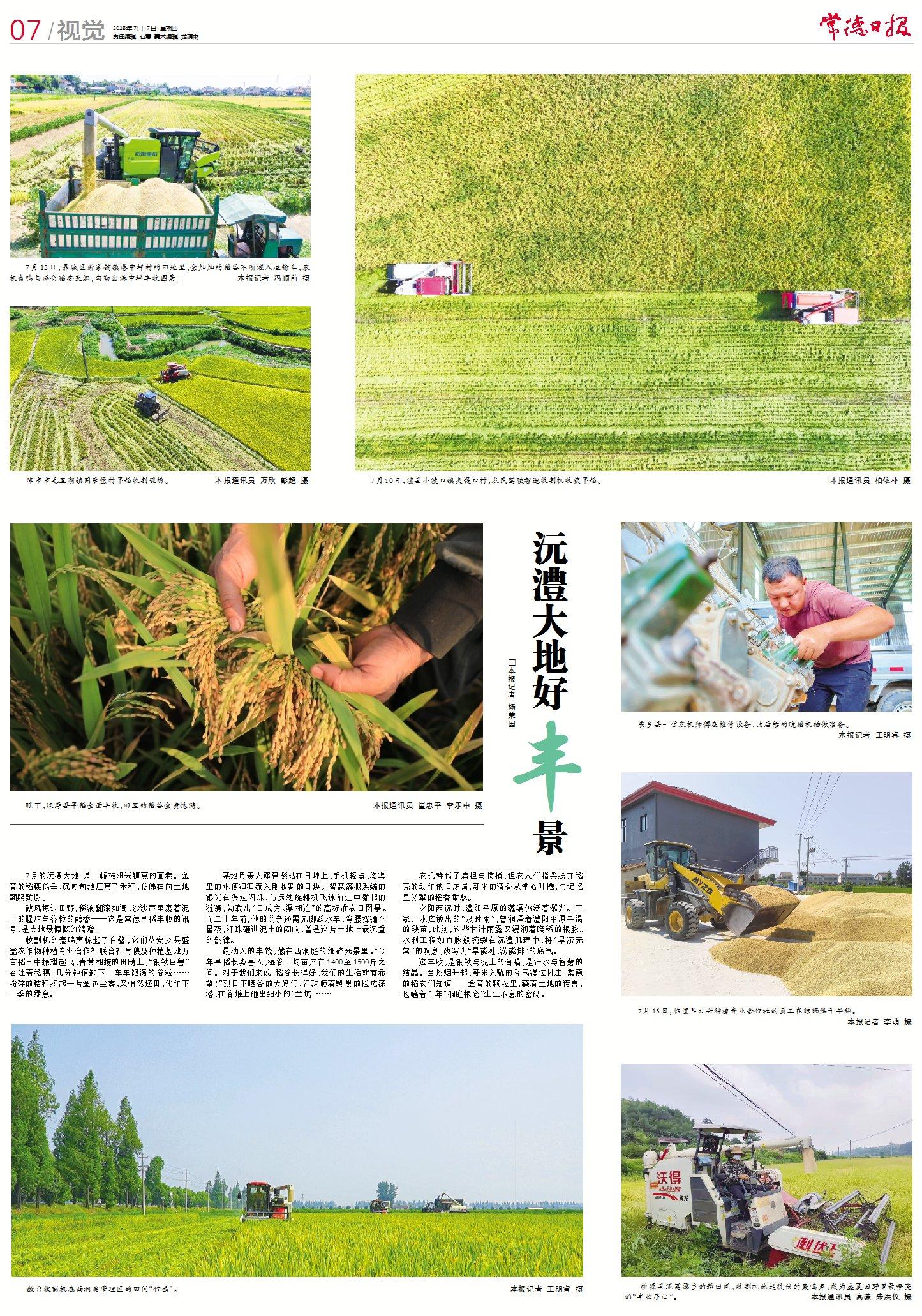 7月的沅澧大地,是一幅被阳光镀亮的画卷。金黄的稻穗低垂,沉甸甸地压弯了禾秆,仿佛在向土地鞠躬致谢。