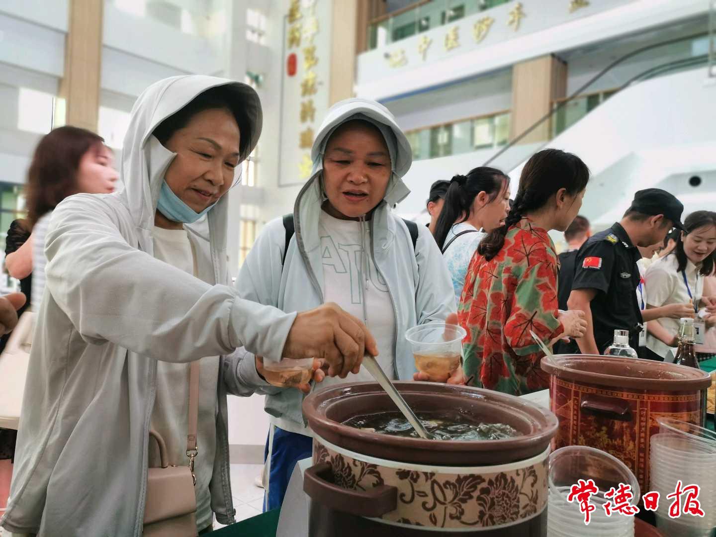 为推广中医药文化,活动现场还为市民提供精心熬制的药膳汤、药膳粥,以及五黑馒头、养颜馒头等,这些药膳的配方是经由该院多名医生共同研制,具有一定的养生功效。市民在等待过程中,可品鉴节气茶饮、翻看中医书籍,还可以体验中药首饰、中药肥皂、中药驱蚊液、中药洗头液、助眠香薰、香囊等,感受“赶中医集”的烟火气。