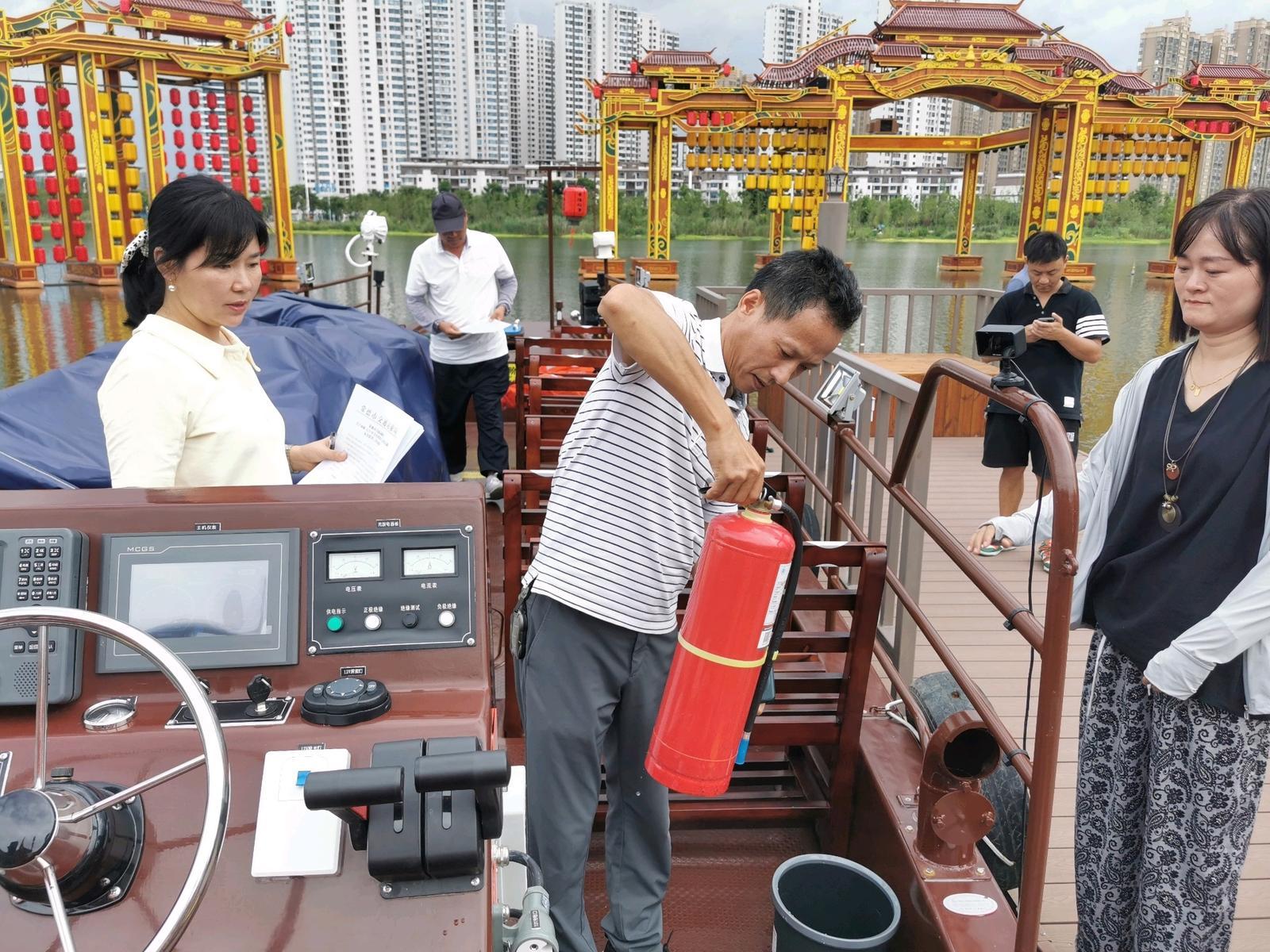 常德日报记者 胡秋菊 文/图“救生衣、灭火器是否足额配备?能否正常使用?”“船舶船员是否持有有效证书?”“客渡船签单发航是否到位?”……7月23日下午,在常德河街游船码头、市城区大西门渡口、桃源县孔家河渡口,常德市水运事务中心工作人员就汛期暑期水上涉客运输风险隐患进行排查整治。