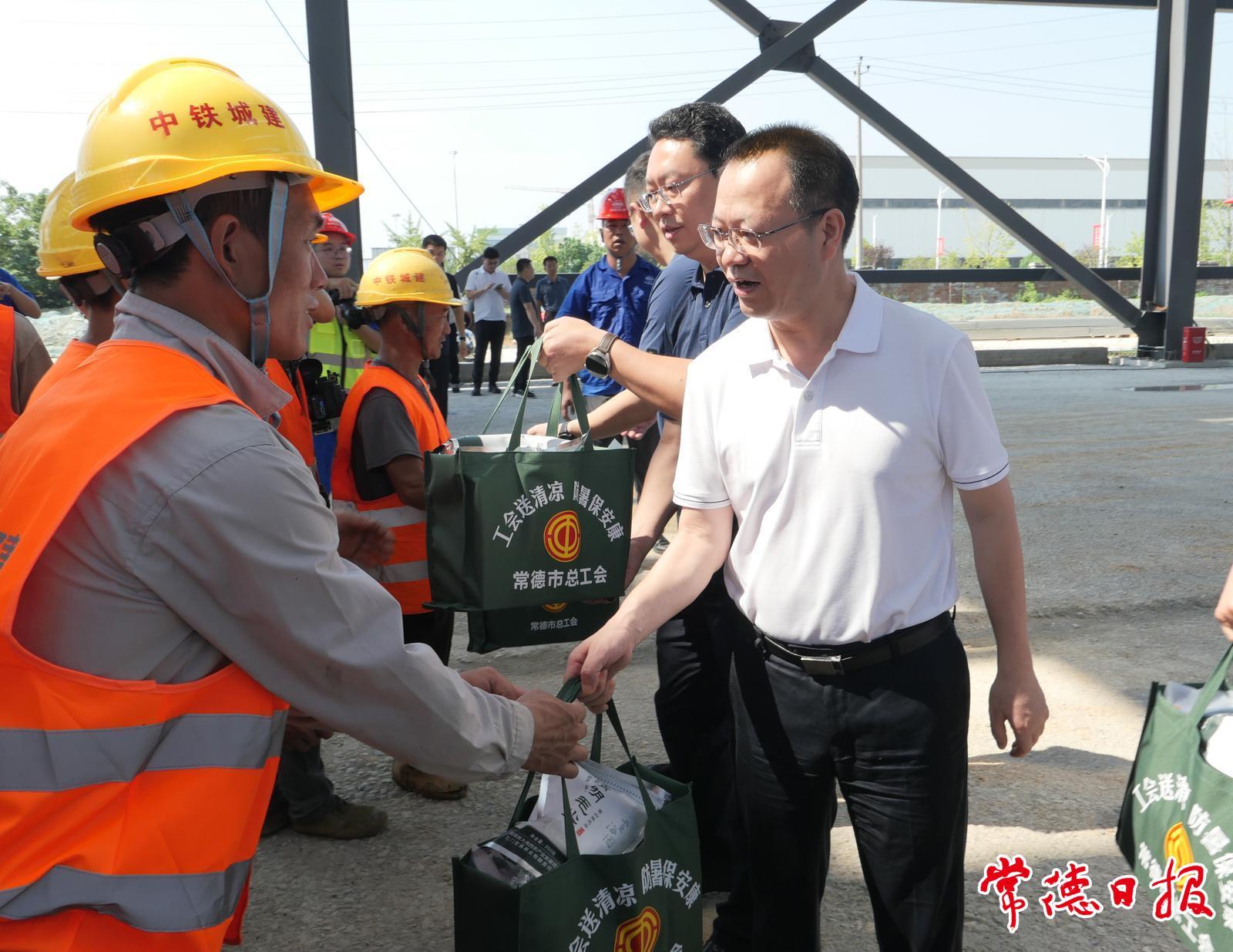 随后,周振宇前往常德高新区中高端液压油缸智能制造园建设项目现场,向奋战在高温下的工人送去市委市政府的关心关爱,并通过他们向全市奋战在高温下的广大劳动者致以崇高敬意和衷心感谢。周振宇强调,企业高温作业要将防暑措施落到实处,要科学组织施工,压紧压实安全生产责任,高标准、严要求做好安全防范措施,织密高温劳动保护网,高质高效推进项目建设。