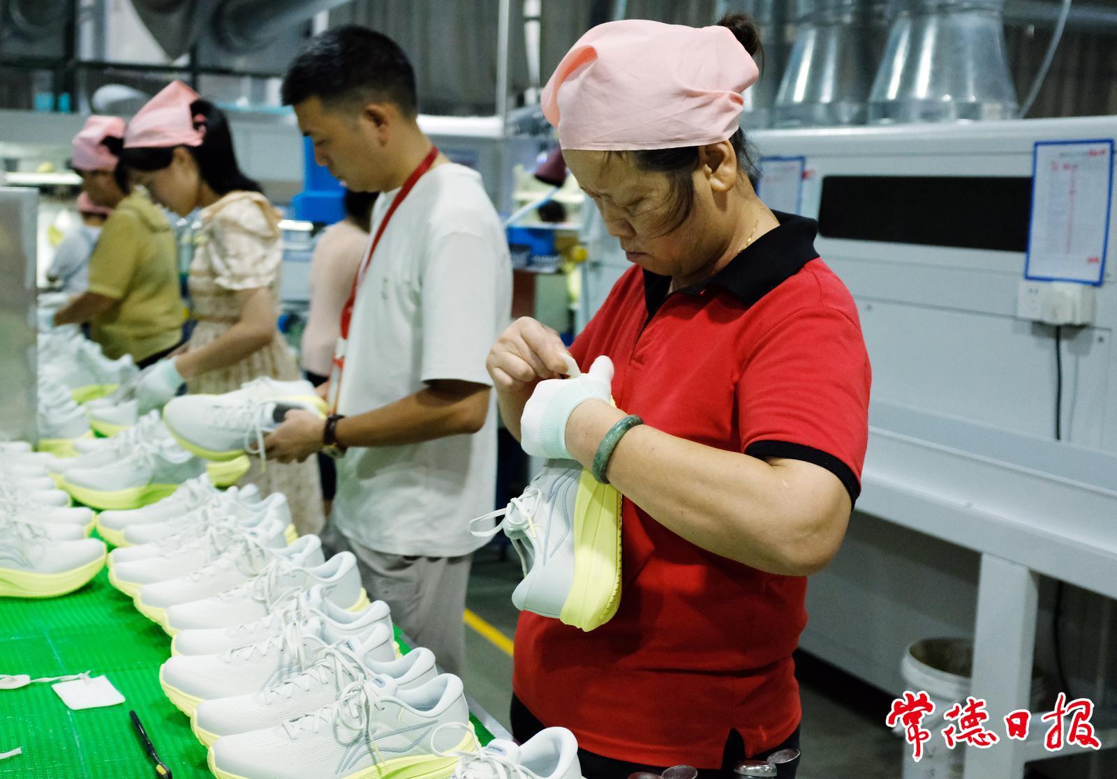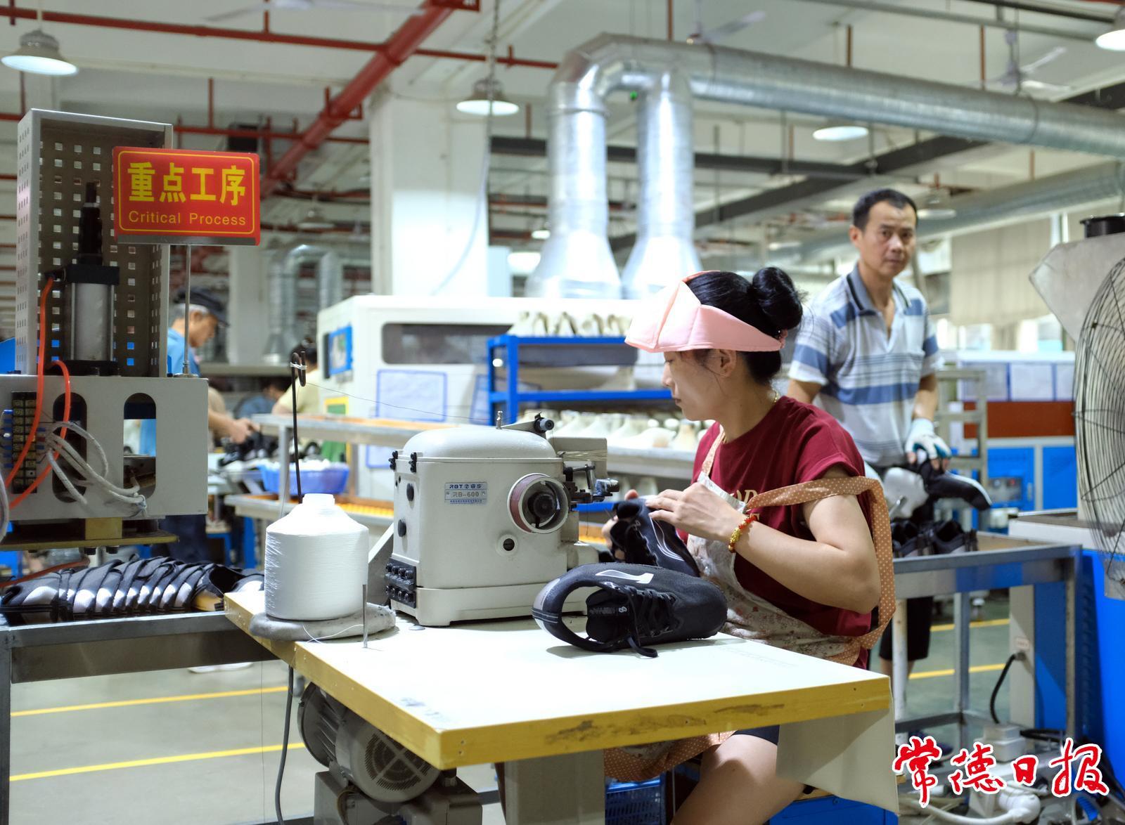 位于桃源高新区的湖南嘉泰鞋业有限公司是一家集研发、生产于一体的现代化运动鞋制造企业,公司现有员工1800余人,年产能达550万双成品鞋。正值暑夏,车间里依然是一片忙碌的景象,工人们正在加紧生产。常德日报记者 谭明 摄影报道