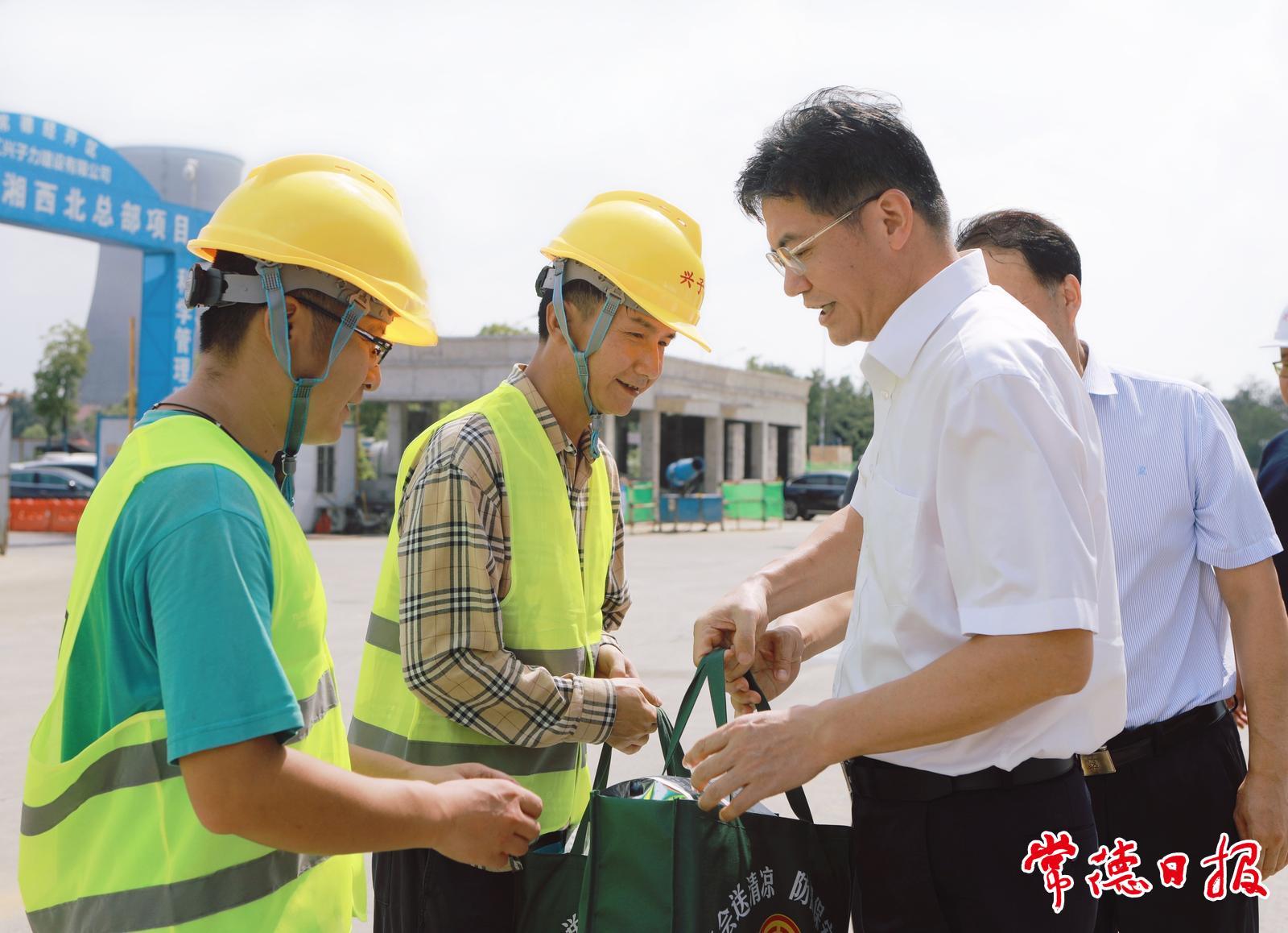 圆通速递湘西北总部暨智慧科创园项目是今年市重点建设项目,位于常德经开区,总投资约5.25亿元,主要建设湘西北区域运营管理总部、区域国内国际商贸运营总部、物联网科技创新应用基地、云仓中心、结算中心等。罗毅君详细了解项目进展、质量管控、安全生产等有关情况,看望慰问一线劳动者,希望他们在高质量推进工程建设的同时,注意防暑降温和施工安全;叮嘱项目负责人严格落实防暑降温措施,科学调整作业时间,确保工人身体健康和项目建设安全。