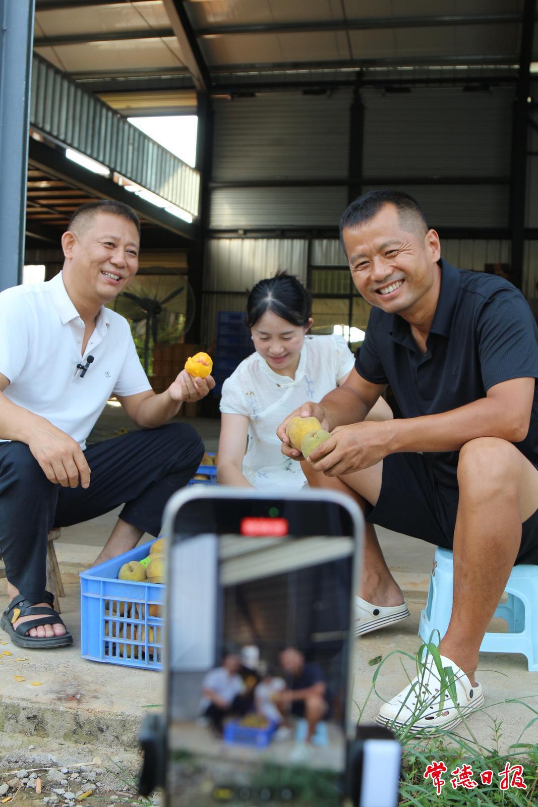 “‘果子哥’我来了。”下午4时许,隔壁黄山峪村村支书赵忠明带着手机支架、无人机来到基地。看到今年黄桃丰收,赵忠明想着不能让果子烂在树上,于是主动利用自己网络平台的人气帮他增加销售。镇政府和村两委干部也化身“推销员”,在朋友圈、电商平台帮着吆喝。