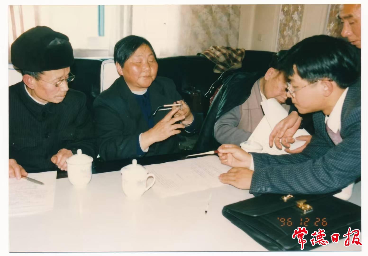 7月18日,常德市日军细菌战受害者协会会长高锋收到朋友发来的一张老照片。那是1996年,刚大学毕业不久的他身着借来的西装,梳着当时流行的“郭富城头”,正专注地记录常德细菌战受害者何英珍的证词。
