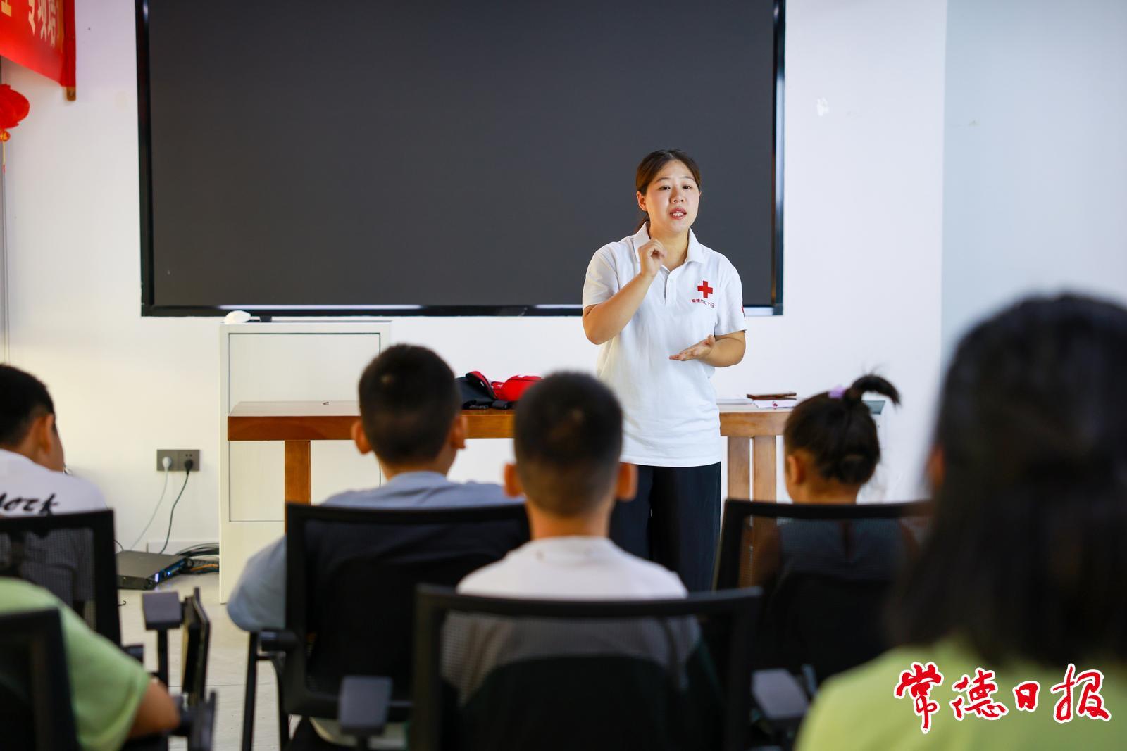 常德日报记者 蔡文龙 文/图 7月29日,深圳市深华物业集团有限公司湖南分公司联合市红十字应急救护志愿服务队,在市城区康桥蓝湾小区开展防溺水急救安全知识公益培训活动,吸引了20多名小朋友积极参与。这是该物业公司“暑期安全护航”系列活动的第二站,旨在提升儿童应对突发危险的自救互救能力。