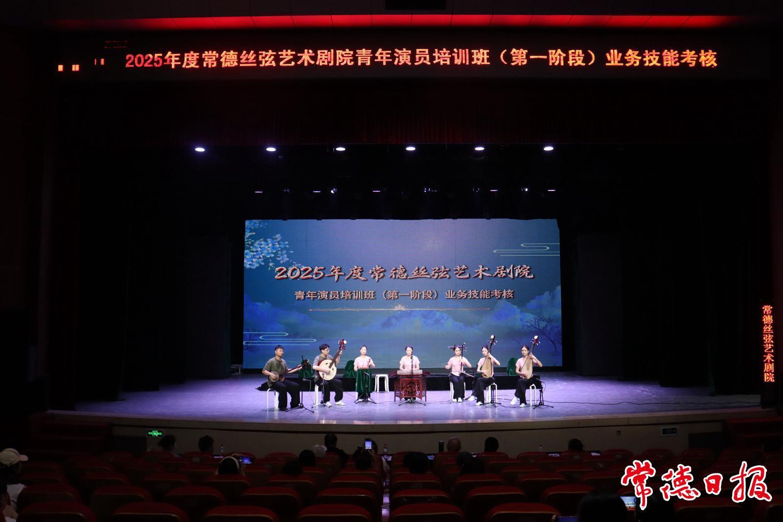 常德丝弦是湖南曲种湖南丝弦的重要分支,2006年被列入第一批国家级非物质文化遗产名录。为传承和保护地方特色传统文化,常德丝弦艺术剧院通过招募、培养青年后备人才,不断充实人才队伍。今年初,剧院邀请到了常德丝弦名家宋洁和常德市弦乐演奏家罗耘“传帮带”。此次考核正是检验青年演员培训半年时间的学习成果,全面评估他们在唱腔、形体、器乐方面的专业水准、表演技能和艺术表现力。