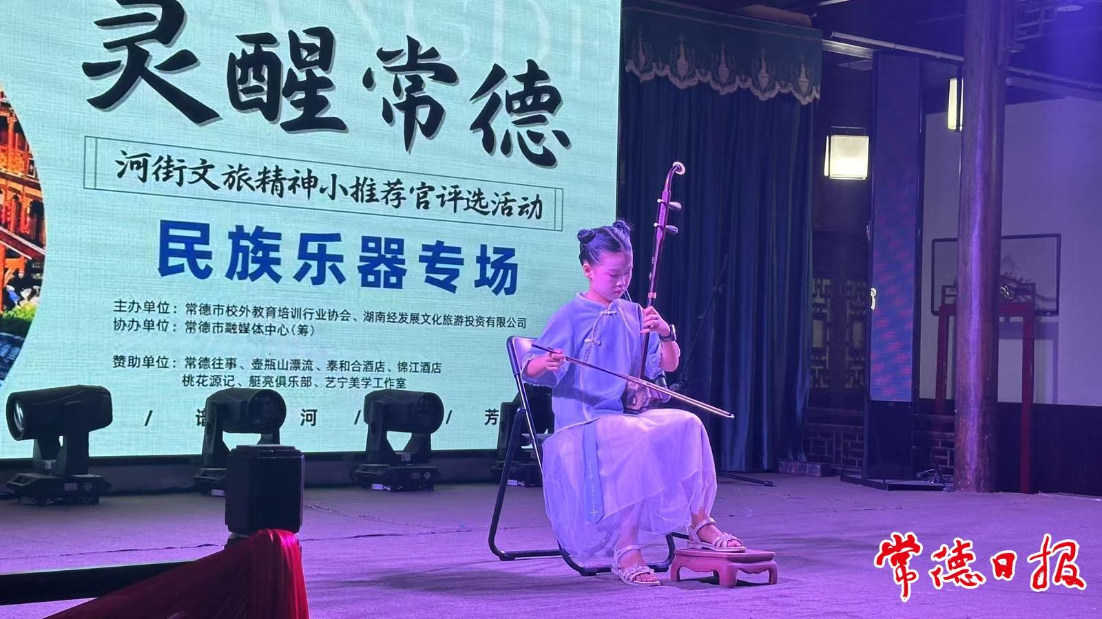 常德日报记者 伍婷 李香泥 文/图 7月29日,2025年“灵醒常德·河街文旅精神小推荐官”评选活动首场“民族乐器专场”在常德河街鸳鸯走马楼拉开帷幕。