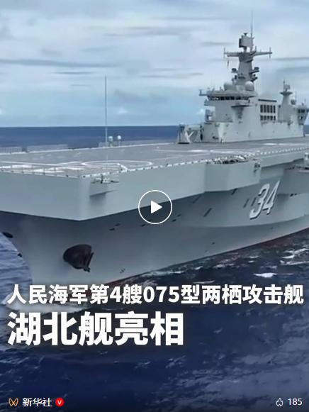 海军湖北舰,舷号“34”,是人民海军第4艘075型两栖攻击舰。中国人民解放军建军九十八周年,海军湖北舰官兵为战友送上祝福↓