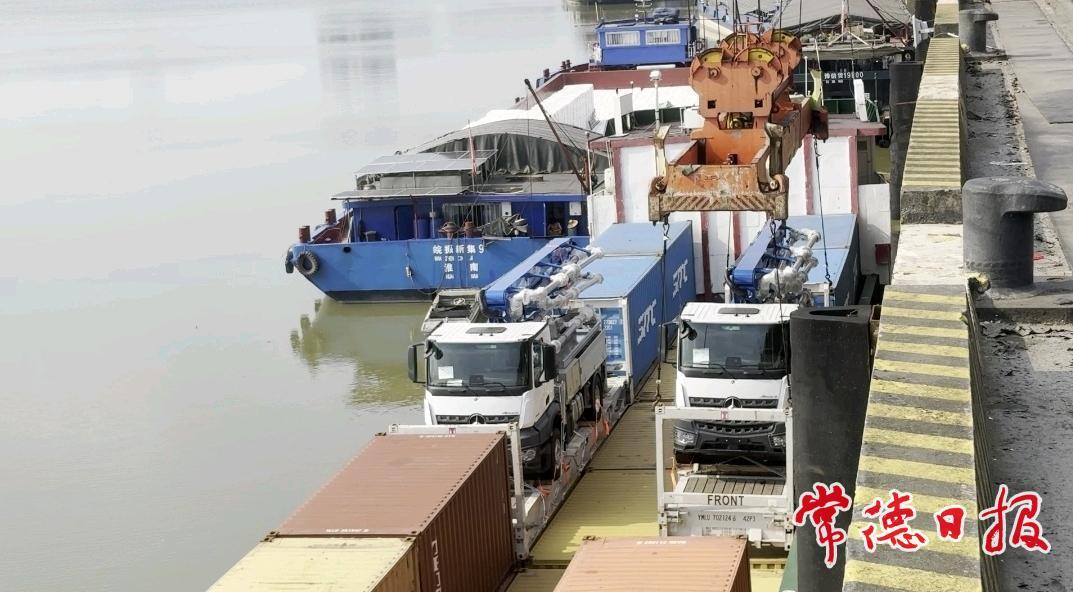 湖南响箭重工科技股份有限公司位于常德市鼎城区,是一家从事混凝土泵车、氢能源储氢装备、储氢高压容器领域研发、制造和销售的企业,公司产品远销欧洲、中东等地区。公司以前的产品出口方式是将散货拖车到上海,再装箱出口到国外,因混凝土泵车零部件偏大,属于特种设备,散货运输和沿海港口装箱费用高。如今改从常德报关出口后,常德到上海段运费比之前降低40%,全过程节约运输成本1万元/大柜。不仅如此,从常德港出口货物全程“一箱到底”,中途不需换箱,大大减少了运输的中间环节和货物损耗,运输流程更简单、高效、快捷。