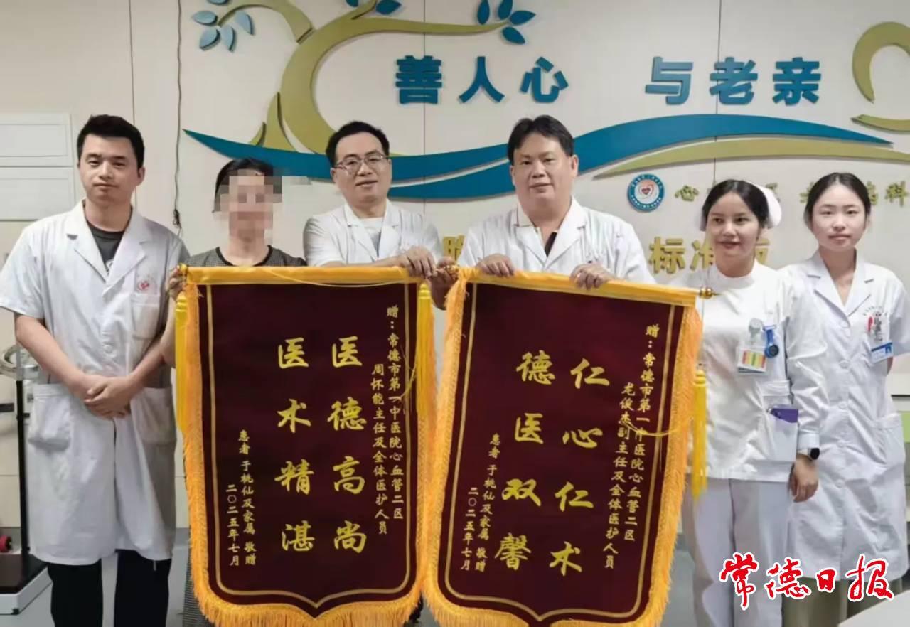常德日报记者 王浪 通讯员 吴秀英 文/图 “一个月了,心里的这块‘石头’终于没了!太感谢你们了!”近日,即将出院的于奶奶握着常德市第一中医医院心血管科二病区负责人周怀能的手连声感谢,家属还送上两面锦旗以表赞誉。该团队通过高难度“冠状动脉旋磨术”,成功帮助严重冠脉钙化狭窄的于奶奶解除致命危机。