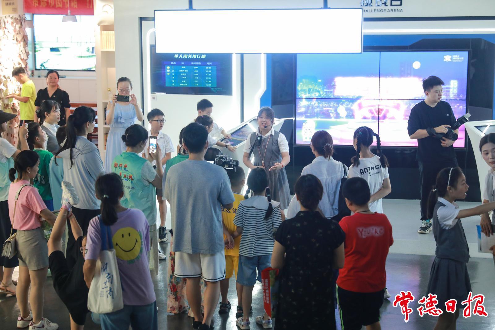 活动伊始,小读者们在展馆门口有序集合签到,一张张兴奋的脸庞充满对活动的期待。进入展馆后,“小小讲解员”们化身城市名片的传递者,分组带领大家穿梭于各个展区。他们用稚嫩却清晰的声音,结合模型、影像等展示形式,向同伴们介绍常德的城市发展脉络、未来规划蓝图,从柳叶湖的生态保护到常德河街的非遗传承,从古城遗址的保护到现代商圈的布局,让小读者们直观感受到家乡的变迁与魅力。