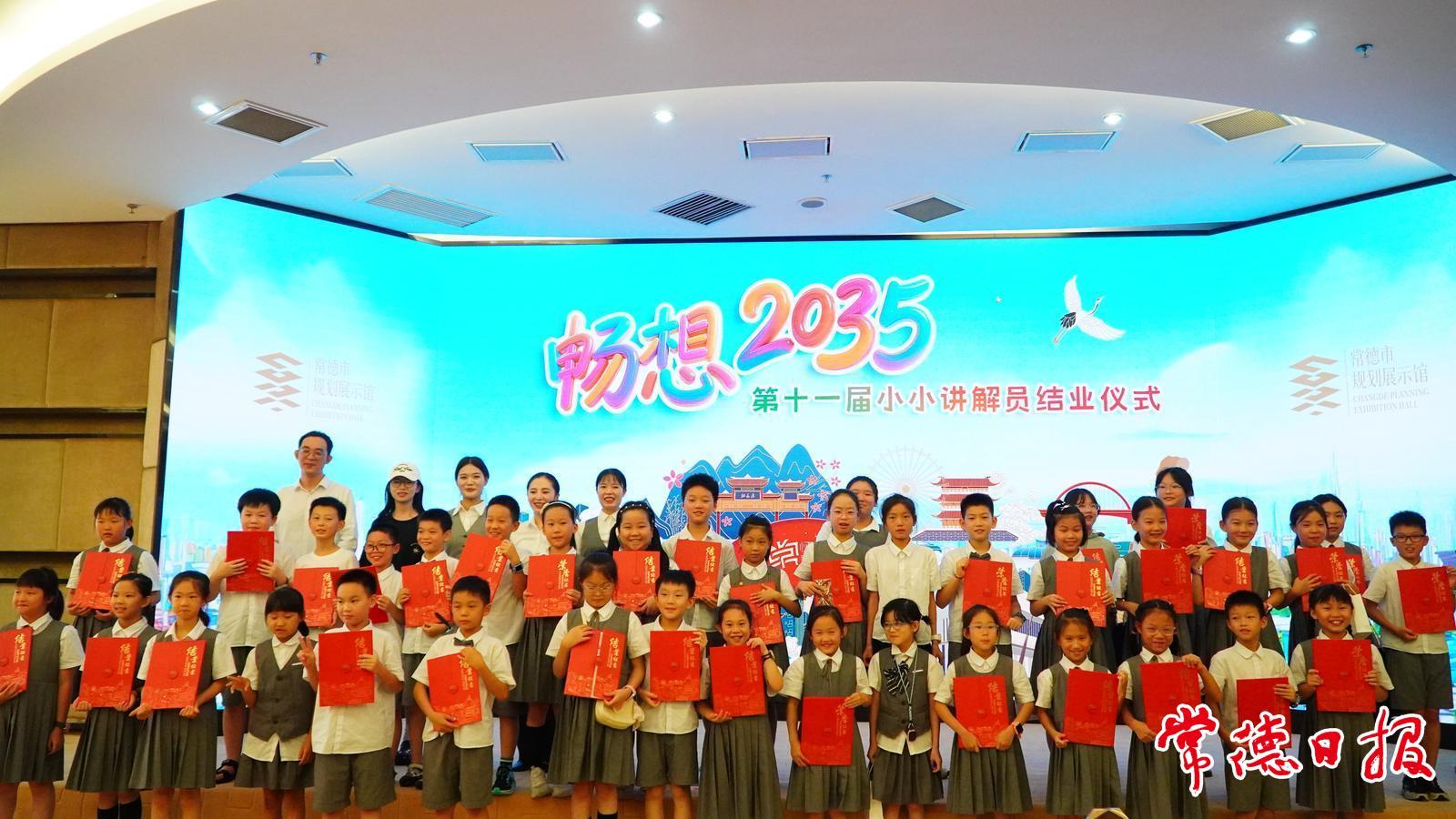 常德日报记者 陈子尧 姚瑶 通讯员 王姣 文/图“我希望未来的常德,每条小河都清澈见底,我和小伙伴们能在河边快乐地读诗!”本届小小讲解员刘梓瑶充满憧憬的声音,回荡在常德市规划展示馆。8月4日下午,为期五天的第十一届“畅想2035”小小讲解员公益培训圆满落幕,40余名8至12岁的小学员顺利结业。