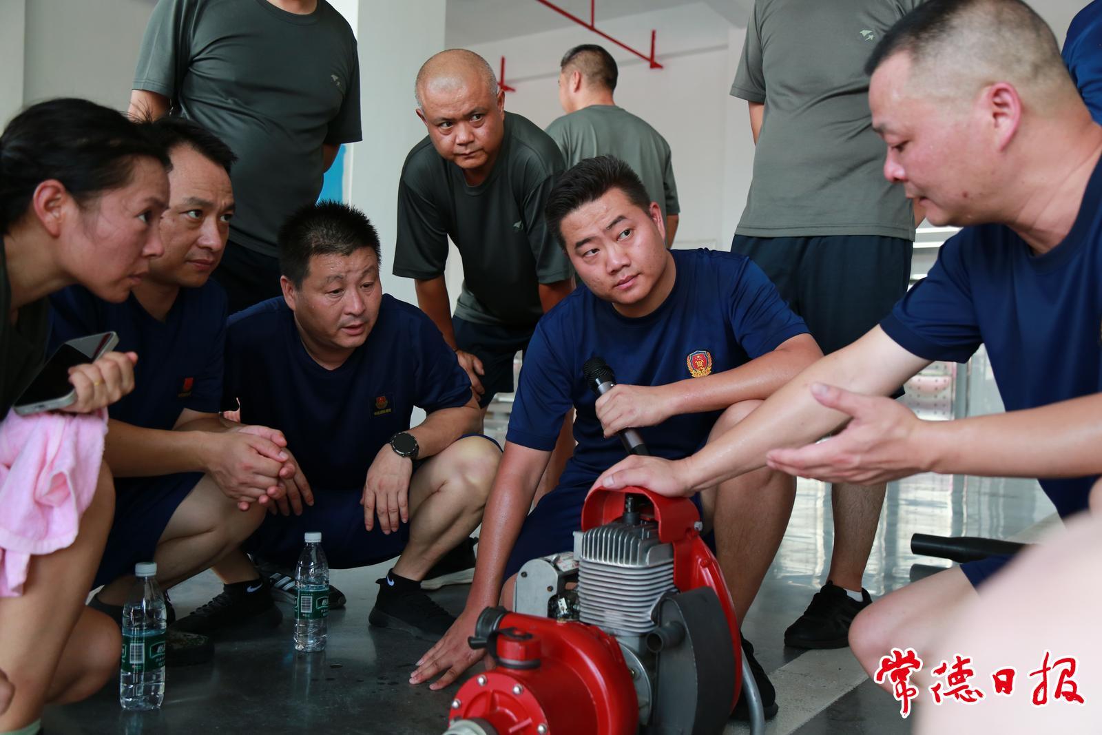 森林火灾应急预案相关规定解读,火灾扑救基本知识、基本战法和安全避险常识教授,个人防护装备、以水灭火装备操作和基本维护训练在常德消防四站合一进行,而无人机水源定点投放演练,森林火灾扑救实战演练等内容则在武陵区白鹤镇罗湾村九组进行。