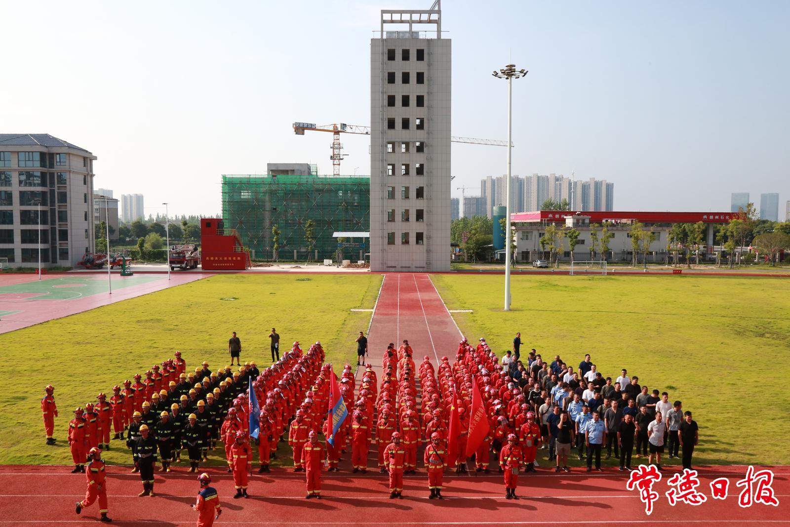 常德日报记者 彭进军 文/图 8月5日,常德市高火险县(区)专业森林消防队伍实训演练在常德消防四站合一(朗州北路北端)举行。来自石门县、桃源县等6个森林高火险县(区)森林防灭火专业队伍、重点林区乡镇火情处置工作人员共计210人参加演练。