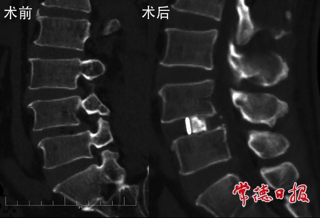 62岁的陈先生(化名)饱受腰腿疼痛折磨2年,行走不足20米便疼痛难忍。经检查确诊为“腰椎滑脱伴椎管狭窄”,传统手术需大面积剥离腰部组织,创伤大、恢复慢。医疗团队创新采用CLIF技术,通过侧腰仅5—6厘米的切口,在腰大肌间隙建立通道完成椎间盘处理与融合器植入。术后患者疼痛即刻缓解,椎间隙高度与椎管宽度显著恢复,次日即可下床活动。