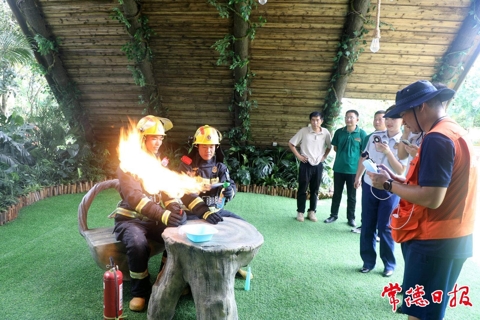 直播中,从开场主播怀抱蜜熊、环尾狐猴与游客小朋友互动,到虎狮园借老虎避暑讲高温防暑,水豚园结合水豚亲水特性说防溺水,大象馆以大象记录本领教逃生技巧,小动物幼儿园围绕幼兽托管讲家庭防火,猿猴公园用猴子呼救习性教报警知识,各个环节趣味十足,同时在每个动物园馆点还融入了消防版“谁是卧底”“你比画我来猜”等趣味互动游戏,强化安全意识。压轴的夏日安全实验,展示杀虫剂、花露水、防晒喷雾遇火风险,直观科普隐患防范。