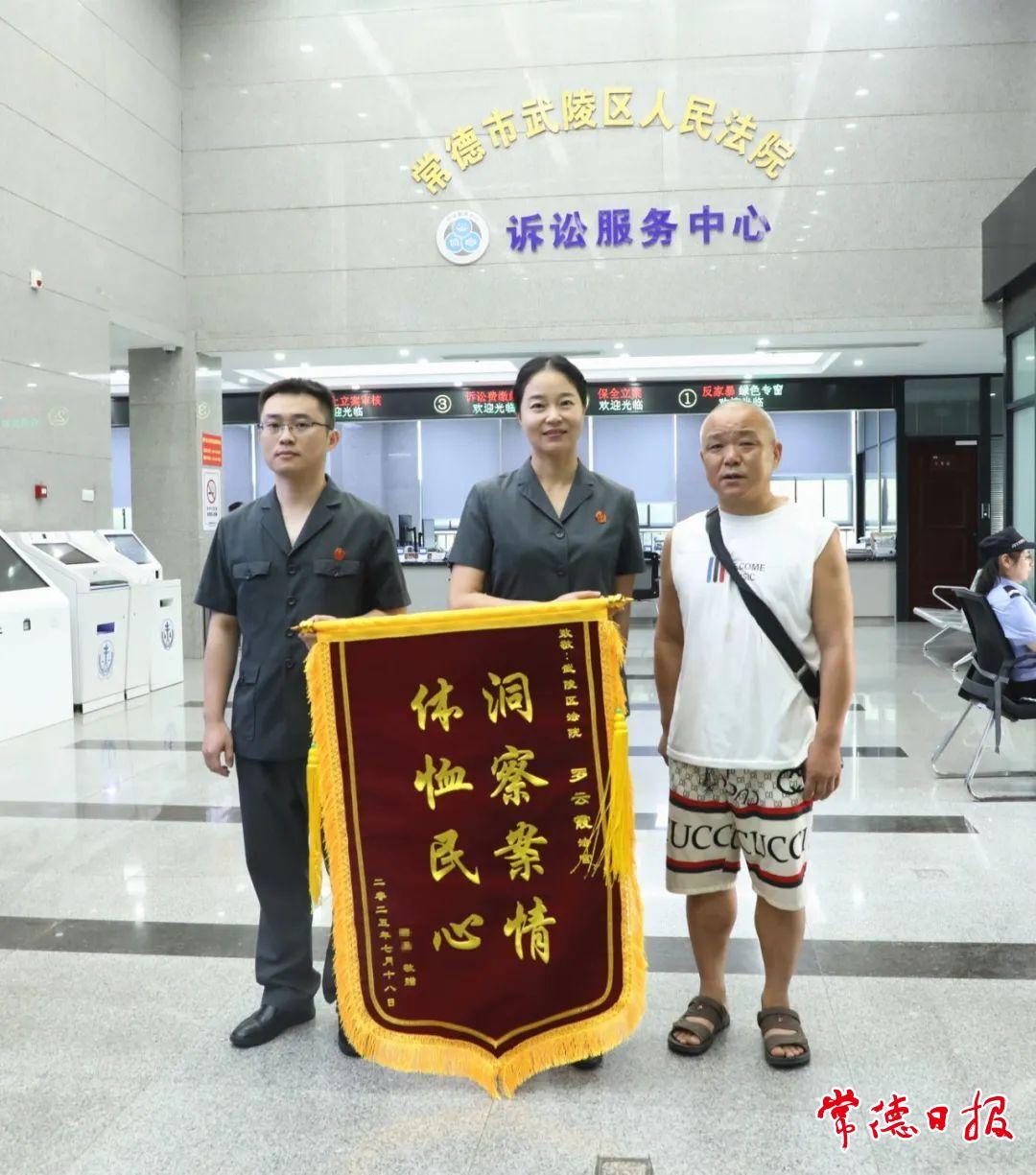 常德日报记者 李张念 通讯员 范亚娉 余晓 文/图 近日,在武陵区人民法院诉讼服务中心,当事人赵某将一面印有“洞察案情 体恤民心”的锦旗郑重交到罗云霞法官团队手中,感谢他们以司法智慧成功化解了一起纠缠13年的民间借贷纠纷。
