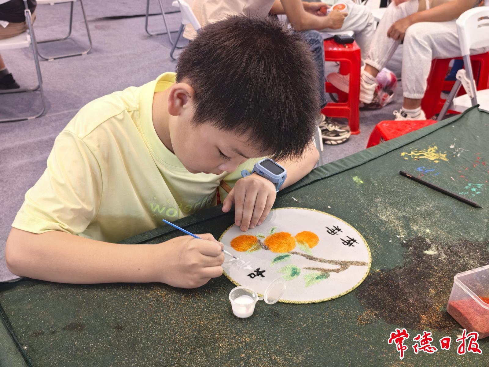 流动大课堂以“传统文化进商场,亲子共学乐成长”为主题,设置了“麻质画-事事如意手持扇”“宋锦手机链”两项特色课程。活动现场,孩子们兴致勃勃地绘制麻质画扇面,学习编织精美的宋锦手机链,完成的作品充满童趣与创意。