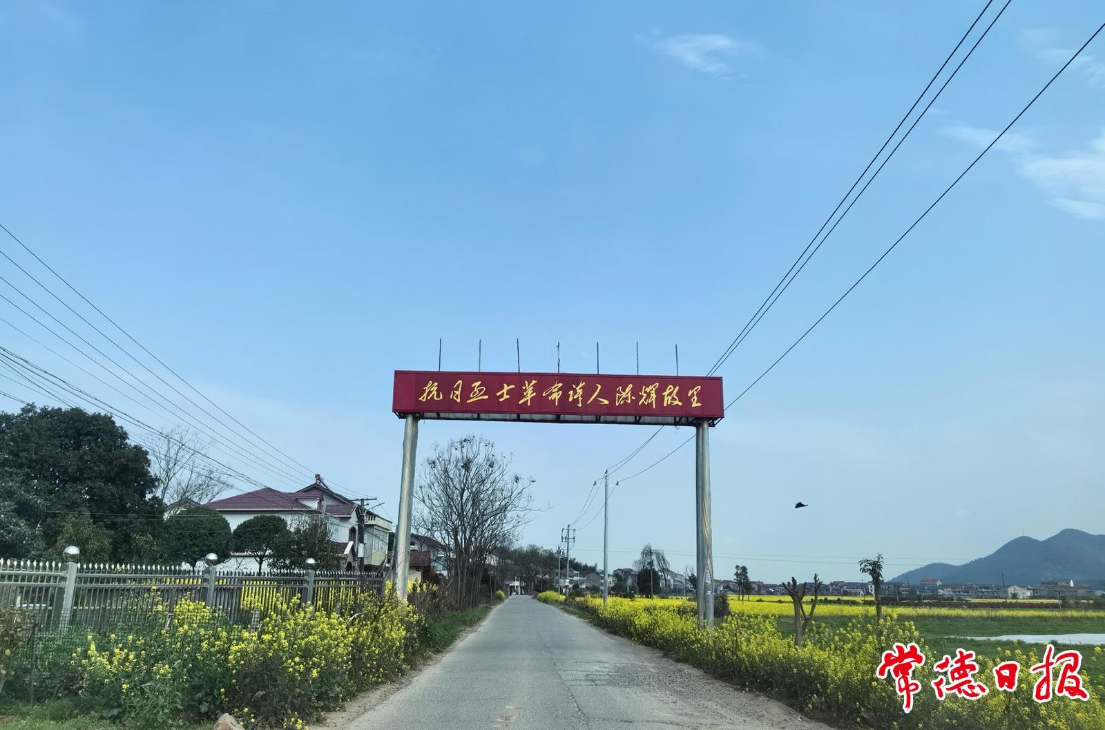 7月18日,太阳山下,阳光炽烈,“抗日烈士革命诗人陈辉故里”的牌匾庄严肃穆。水泥路两旁的稻田里,收割机正在来回奔跑。远处的青山与民居,近处的田畴与野花,勾勒出陶渊明笔下世外桃源的模样。但是,收割机的响声又提醒人们,这里是行进中的现代中国新农村,宁静安稳,又生机勃发。这样的场景,是陈辉在梦中诗里多次描摹过的,也是他愿意用青春用生命去守护的。