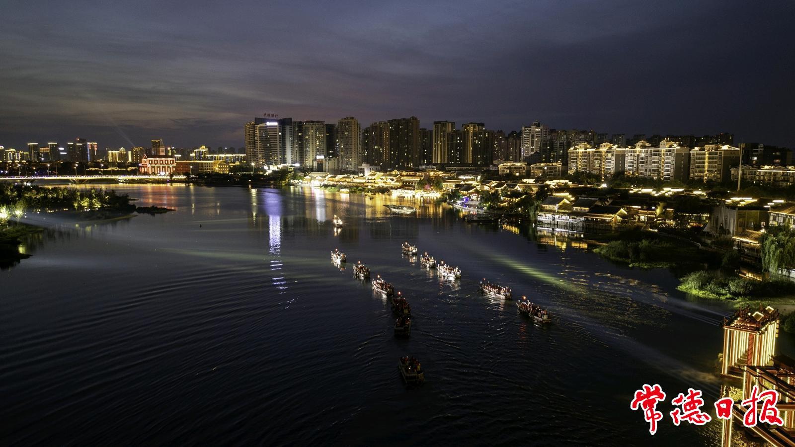 华灯初上,穿紫河上的游船划开粼粼波光,《常德往事》的演员们在船头唱起粗犷的船工号子。常德河街的夜晚,如同一幅流动的画卷,照亮了城市夜经济的新未来。