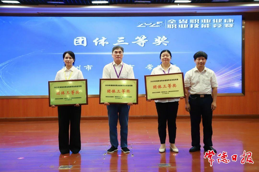 常德日报记者 李白 通讯员 彭友佳 文/图 近日,由湖南省卫生健康委、湖南省总工会、湖南省疾病预防控制局联合主办的2025年湖南省职业健康技能竞赛在长沙圆满落幕。常德市获得团体三等奖,市职防所的雷曹辉获得综合笔试和操作技能单项第三名和个人总成绩三等奖荣誉,袁小方获得个人总成绩三等奖荣誉。
